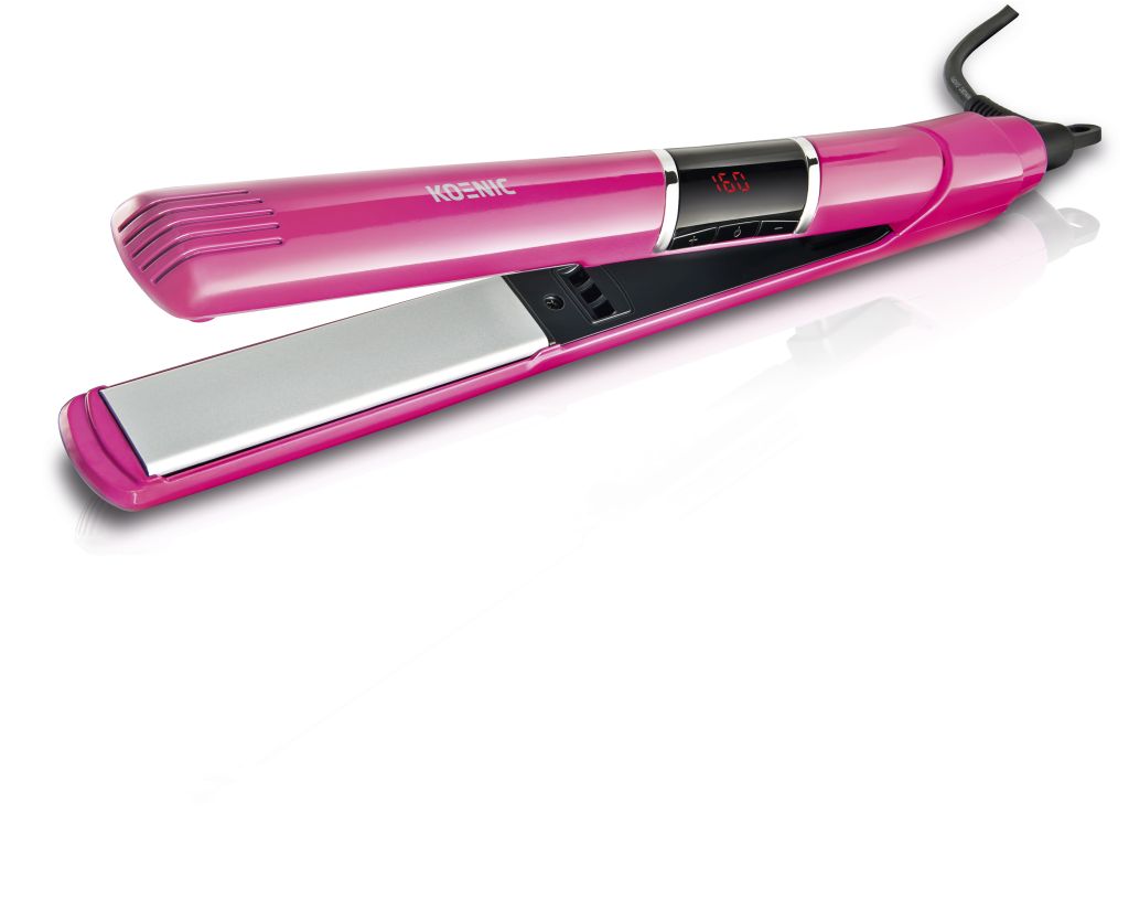 Der Koenic Haarglätter KHS 400 eignet sich für eine spontane Typveränderung oder zum Glätten von widerspenstigem Engelshaar. Mit gefederten Heizplatten mit Keramik-Turmalin-Beschichtung gleitet er mühelos durch jedes Haar und bändigt selbst widerspenstige Mähnen. Die LED-Temperaturanzeige zwischen 140°C und 220°C garantiert individuelles und schonendes Styling.