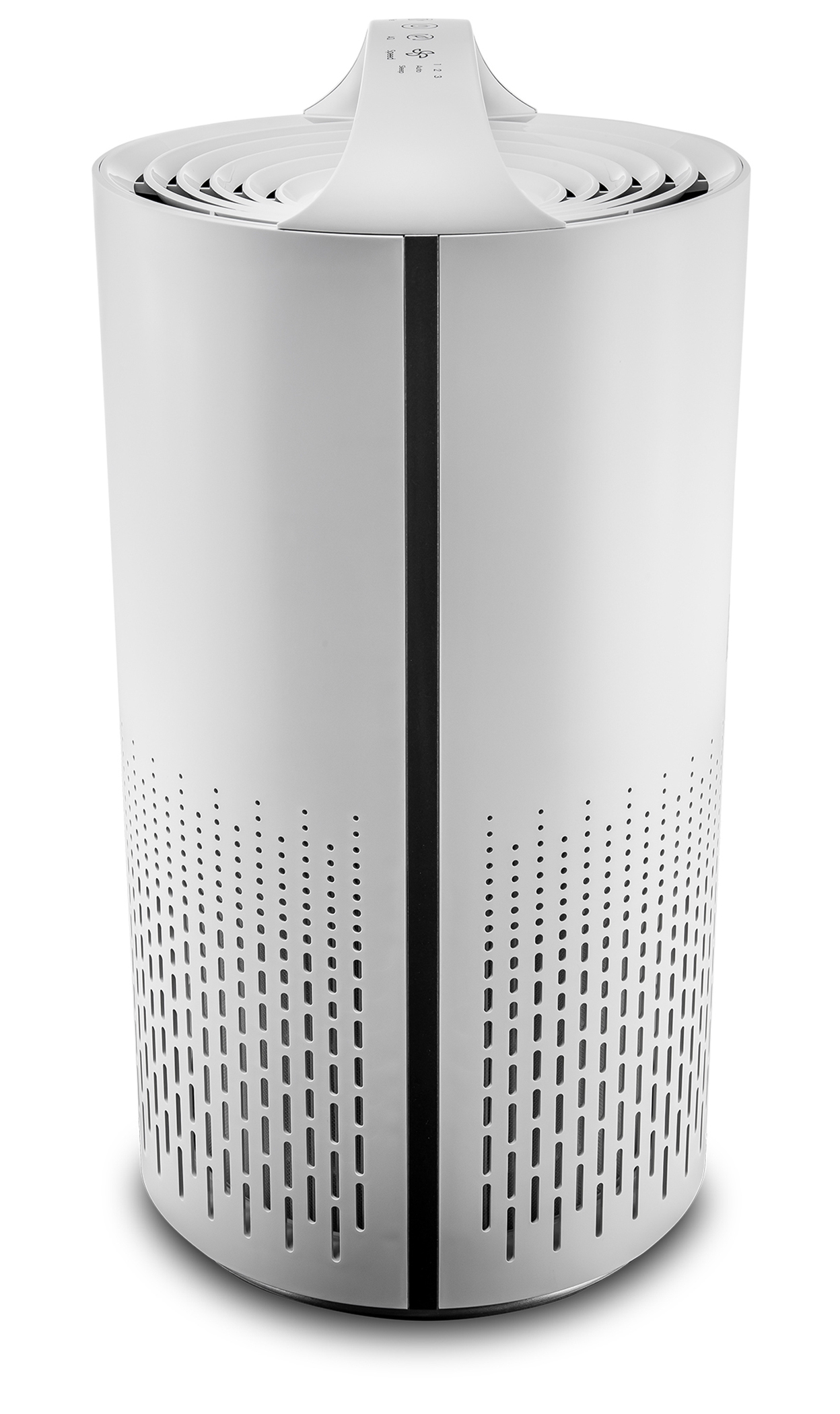 Mit einem 40 Watt starken Ventilator saugt der Luftreiniger die Luft seitlich an. Größere Partikel wie Hausstaub, Schmutz oder Tierhaare bleiben direkt im Vorfilter hängen. Wie ein Schwamm zieht der Aktivkohlefilter unangenehme Gerüche und schädliche Gase, z.B. Formaldehyde oder Benzol, aus der Luft. Mit seinem integrierten HEPA-Filter der Filterklasse H13 entfernt der Luftreiniger zudem 99,97 % der in der Luft befindlichen Viren, Bakterien, Pollen, Milben und Feinstaubpartikel, bevor die gereinigte Luft über die Oberseite des Geräts wieder an die Umgebung abgegeben.