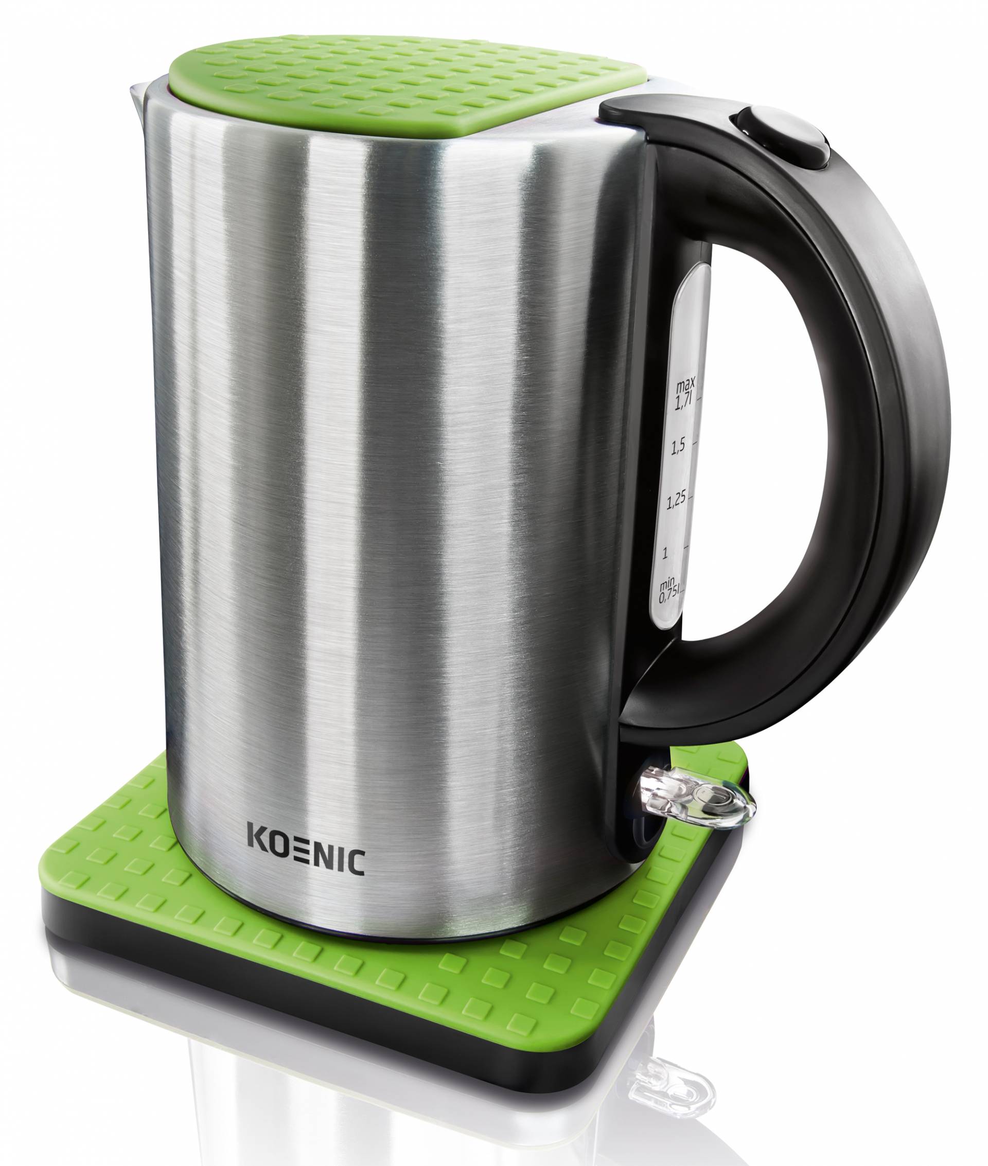 Der Koenic Wasserkocher Comfort KWK 500 ist ein Gerät aus der Comfort-Silikon-Serie. Zu ihr gehören weiterhin die Koenic Kaffeemaschine Comfort KCM 500 und der Toaster Comfort KTO 500. Die Geräte sind in hochwertigem Edelstahl mit modernen Silikonapplikationen gefertigt.