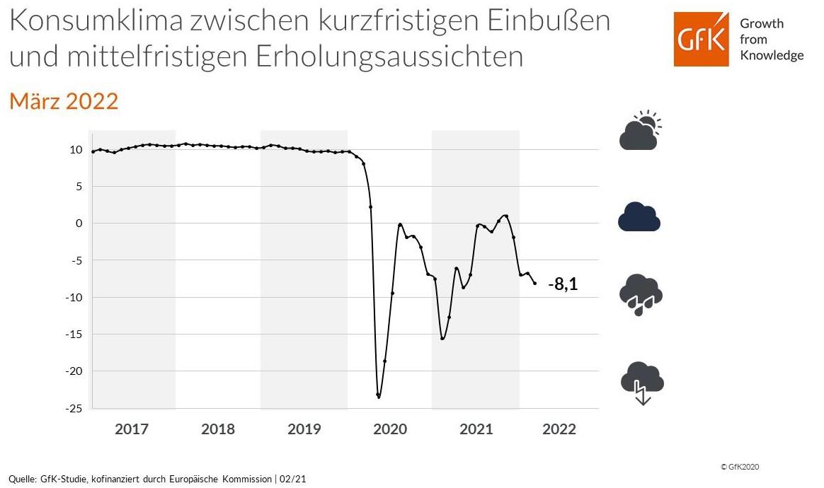 Dennoch seien die Aussichten für die nächsten Monate durchaus positiv: „Erst kürzlich wurde beschlossen, tiefgreifende Pandemiebeschränkungen aufzuheben. Das gibt Anlass zur Hoffnung, dass damit auch die Konsumlaune der Verbraucher wieder zurückkehrt. Würde dies von einem moderaten Preisauftrieb gestützt werden, könnte sich das Konsumklima endlich auch wieder langfristig erholen“, so Bürkl.