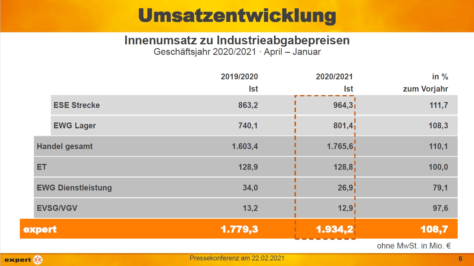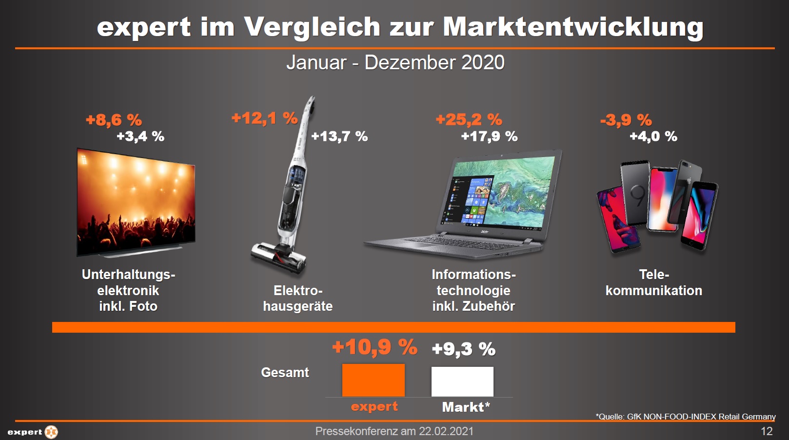 Dr. Stefan Müller, Vorstandsvorsitzender der expert SE, rechnet damit, dass die Geschäfte bis Ende März, „alle sind mittlerweile genervt von Corona“, weiterhin geschlossen bleiben. In seinem virtuellen Vortrag sprach er über die Umsatzentwicklungen wie die Auswirkungen des von Corona geprägten Jahres 2020.