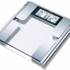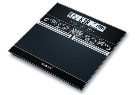 Die Korona Diana Körperfettwaage ist ein Schmuckstück im Bad, das durch die ins Glas eingelassene querlaufende Schmuckbordüre alle Blick auf sich zieht. Direkt unterhalb der Bordüre sind metallene Elemente angebracht, die bei der Berührung mit den Füßen unmerklich Stromimpulse durch den Körper schicken. Auf diese Weise analysiert die Waage den Anteil des Körperfettes, des Körperwassers und der Muskelmasse. Oberhalb der Bordüre ist ein extra breites Display angebracht, das die Werte deutlich und gut lesbaren Ziffern anzeigt. Rechts neben dem aktuellen Gewicht steht der Körperfettanteil. Links weisen die Angaben das Alter, die Größe und den Code des Nutzers aus. Die Waage hat Speicherplätze für 12 Anwender. Jeder bekommt einen Code, um seine Werte über die Sensortasten wiederzufinden und verfolgen zu können.