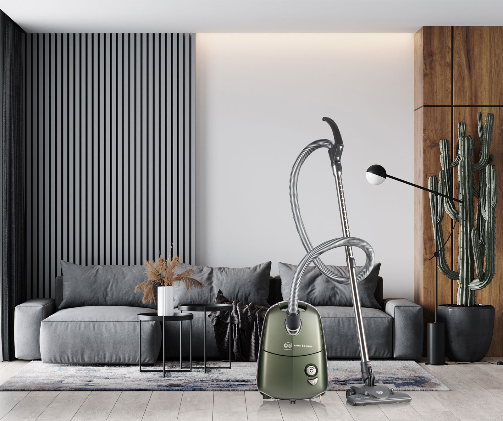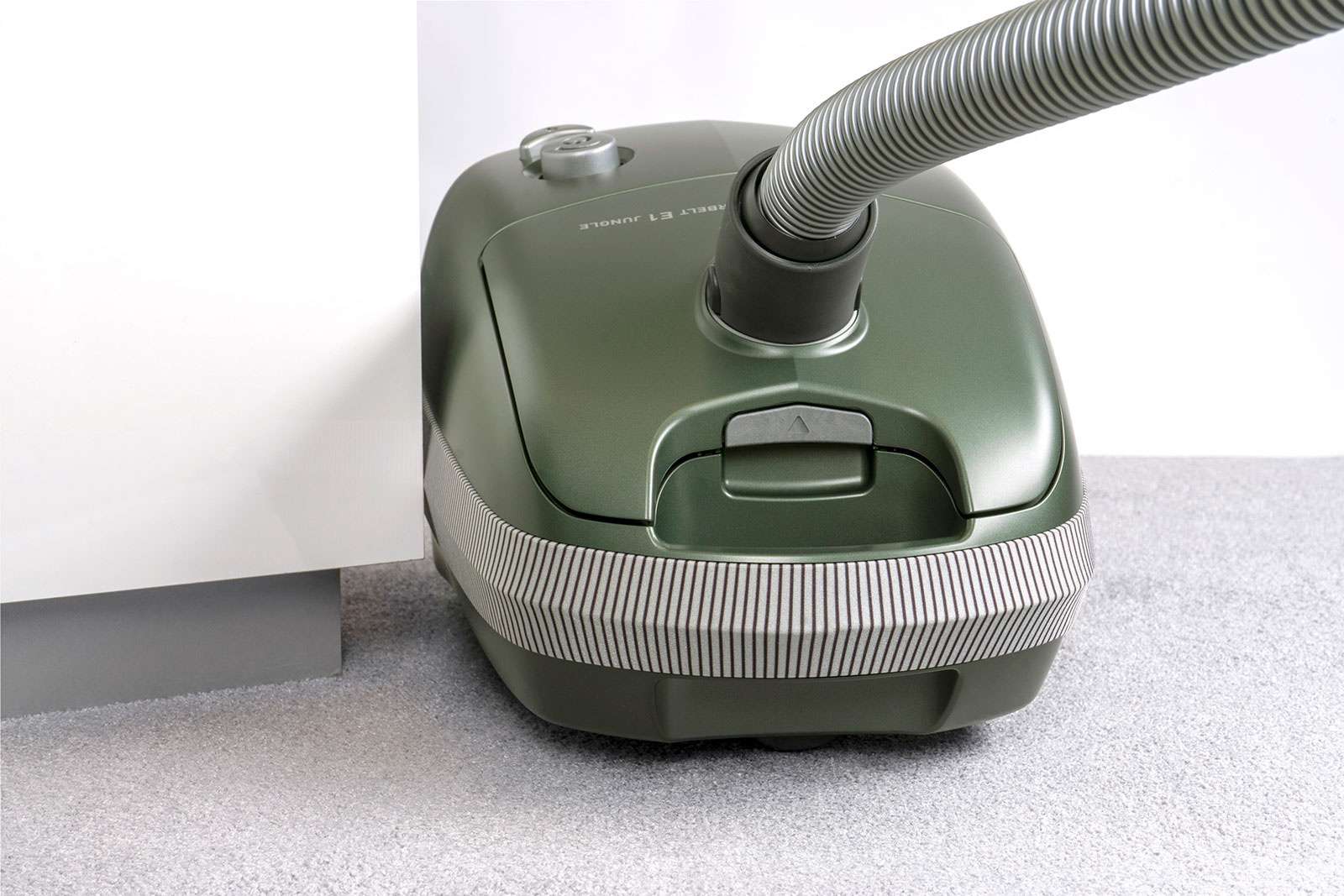 Zurück zum Sebo Airbelt E1 Jungle: Jedes einzelne Gerät wird in Manufakturqualität präzise von Hand lackiert. Das markante Midnightgreen ist aktuell auch bei vielen Interior-Design-Stücken und Automobilen die Farbe der Wahl. Airbelt, namensgeber der Range, ist ein rundum nützliches und wohl einzigartiges Feature: Die patentierte Stoßbandage schützt die Einrichtung vor Kratzern und Schrammen. Zugleich entweicht hierüber auch ganz sanft die Abluft, ohne dass man auch nur ein Lüftchen davon spürt. Und weil der Airbelt aus zu 100% aus recyceltem Material hergestellt ist, wird auch die Umwelt geschont.