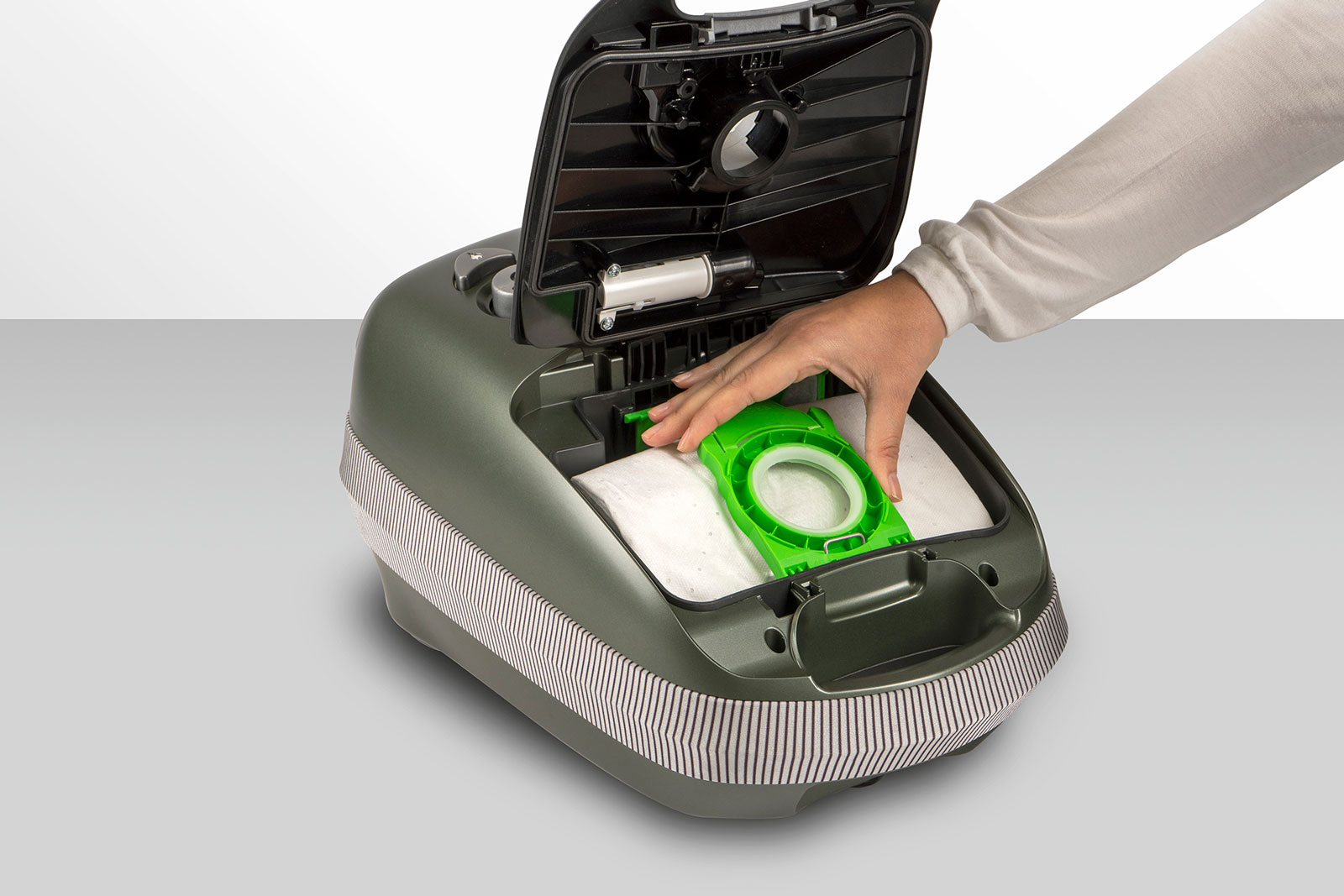 Eine 3-fach-Filtration sorgt derweil für eine maximal saubere Abluft: Durch die drei Filtrationsstufen werden 99,97% des Staubs zurückgehalten, sogar Feinstaub mit einer Partikelgröße von unter 1/100 mm. Damit ist der Airbelt E1 der ideale Staubsauger bei Allergien und Asthma. Die Filtertüte mit einem Volumen von 3,5 Litern besteht aus drei Lagen Elektret-Mikrofiltermaterial. Staub, Dreck und sonstige Partikel werden statisch an das Filtergewebe gebunden – kein Entweichen möglich!