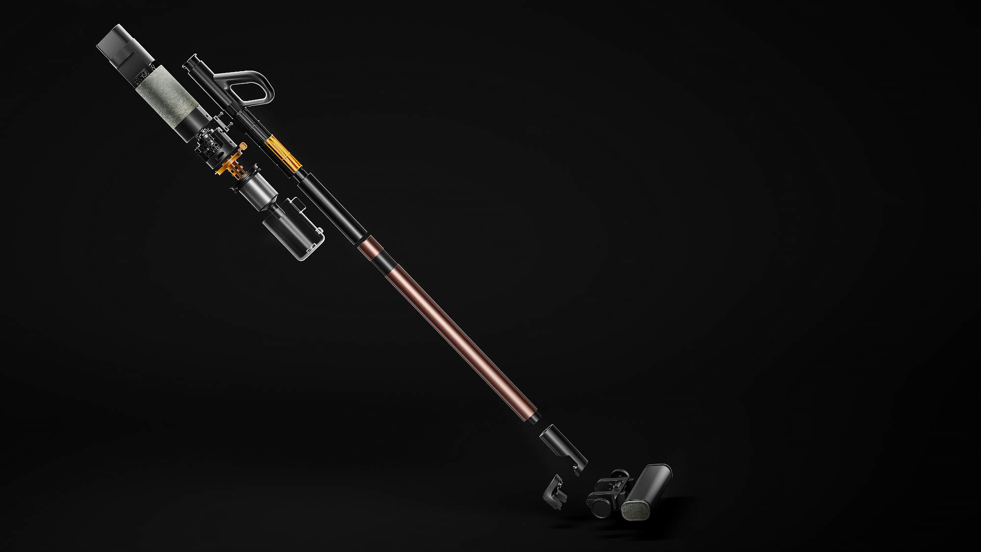 Sämtliche Wartungselemente, zum Beispiel Filter oder Akku, sind beim „Vooper“ leicht zugänglich und zur besseren Identifizierung farbig abgesetzt. Das modulare Konzept des Akku-Handsticks erleichtert Reinigung und Reparatur. Verbraucherinnen und Verbraucher können problemlos selbst Komponenten austauschen.