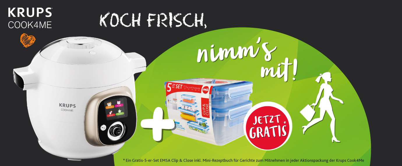 Krups Aktion: Multikocher Cook4Me CZ7001 und Frischhaltedosen in einem Paket.