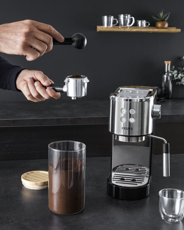 Die Krups Espressomaschine Virtuoso (XP442C) ist ab April 2021 zum Preis von 219,99 € (UVP) erhältlich.