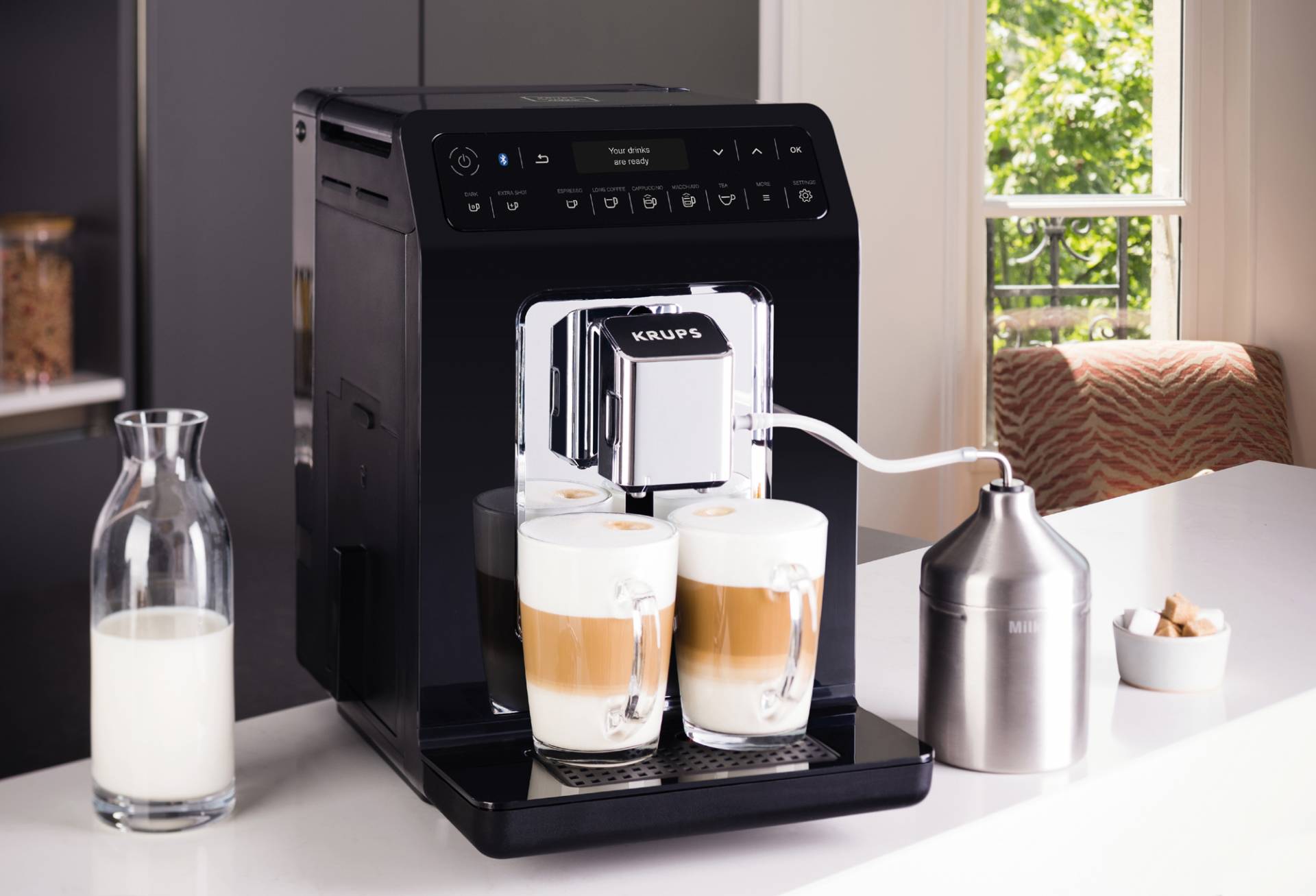 Durch optimal angepasste Wassertemperaturen lässt sich grüner Tee, schwarzer Tee und Kräutertee aufbrühen. Das patentierte Compact-Thermoblock-System ermöglicht ein schnelles Aufheizen und heißen Tee oder Kaffee ab der ersten Tasse. Der neue OLED-Touchscreen und das zweizeilige Textdisplay sorgen bei der Krups Kaffeemaschine Evidence für besonders hohen Bedienkomfort. Durch die ausgefeilte Konstruktion passen sogar hohe Latte-Macchiato-Gläser ohne Probleme unter den Kaffeeauslauf.