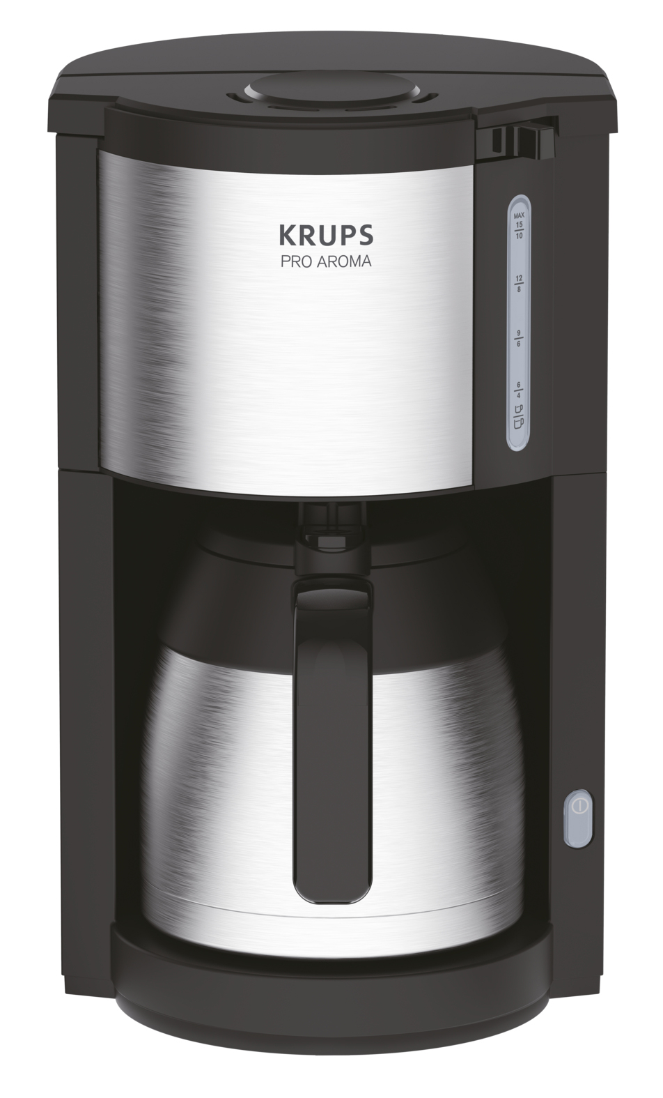Die Krups Kaffeemaschine ProAroma Thermo verfügt über eine hochwertige Thermokanne, die für langanhaltenden Kaffeegenuss sorgen. Angeboten wird die Thermokann in Edelstahl oder Kunststoff.