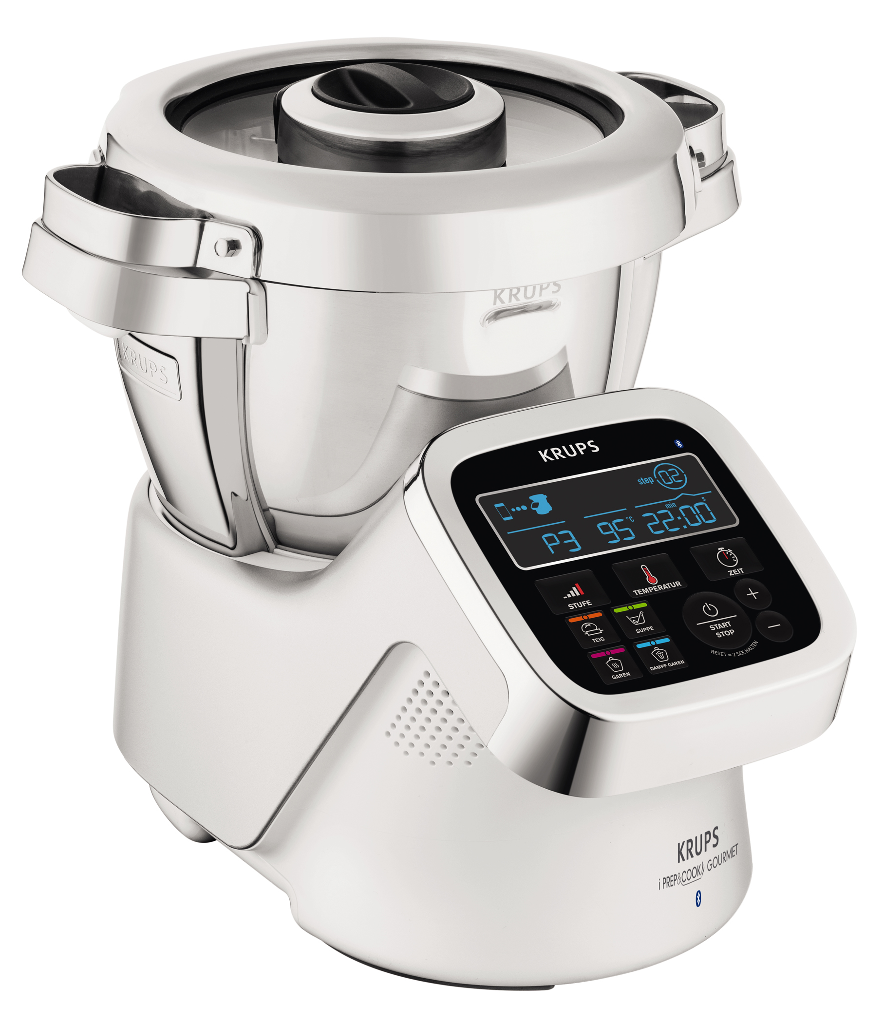 Die Krups Küchenmaschine i-Prep&Cook Gourmet ist eine multifunktionale Küchenmaschine mit Bluetooth-Funktion, Rezept-App und Kochfunktion. Der neue hochwertige Glasdeckel mit Edelstahlstopfen liegt flach auf der Schüssel auf und erhöht die Nutzkapazität auf 3 Liter.