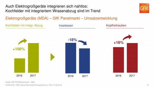 Zum Rekordniveau zählt eine steigende Anzahl an Fertigstellungen im Wohnungsbau. Betrug die Steigerung an Wohnungsfertigstellungen im Jahr 2016 bereits rekordverdächtige 12 % im Vergleich zum Vorjahr, konnte dies 2017 noch einmalig gesteigert werden. Mit ca. 314.000 Einheiten wurden 2017 fast doppelt so viele Wohnungen fertig wie noch 2009 und 13 % mehr als 2016. (Quelle; AMK / GfK). Neben den Neubauten sorgen die Modernisierungen in vielen Haushalten für eine hohe Nachfrage. Nicht zuletzt die neuen Designtrends und Lebensgewohnheiten veranlassen zum Küchenkauf.