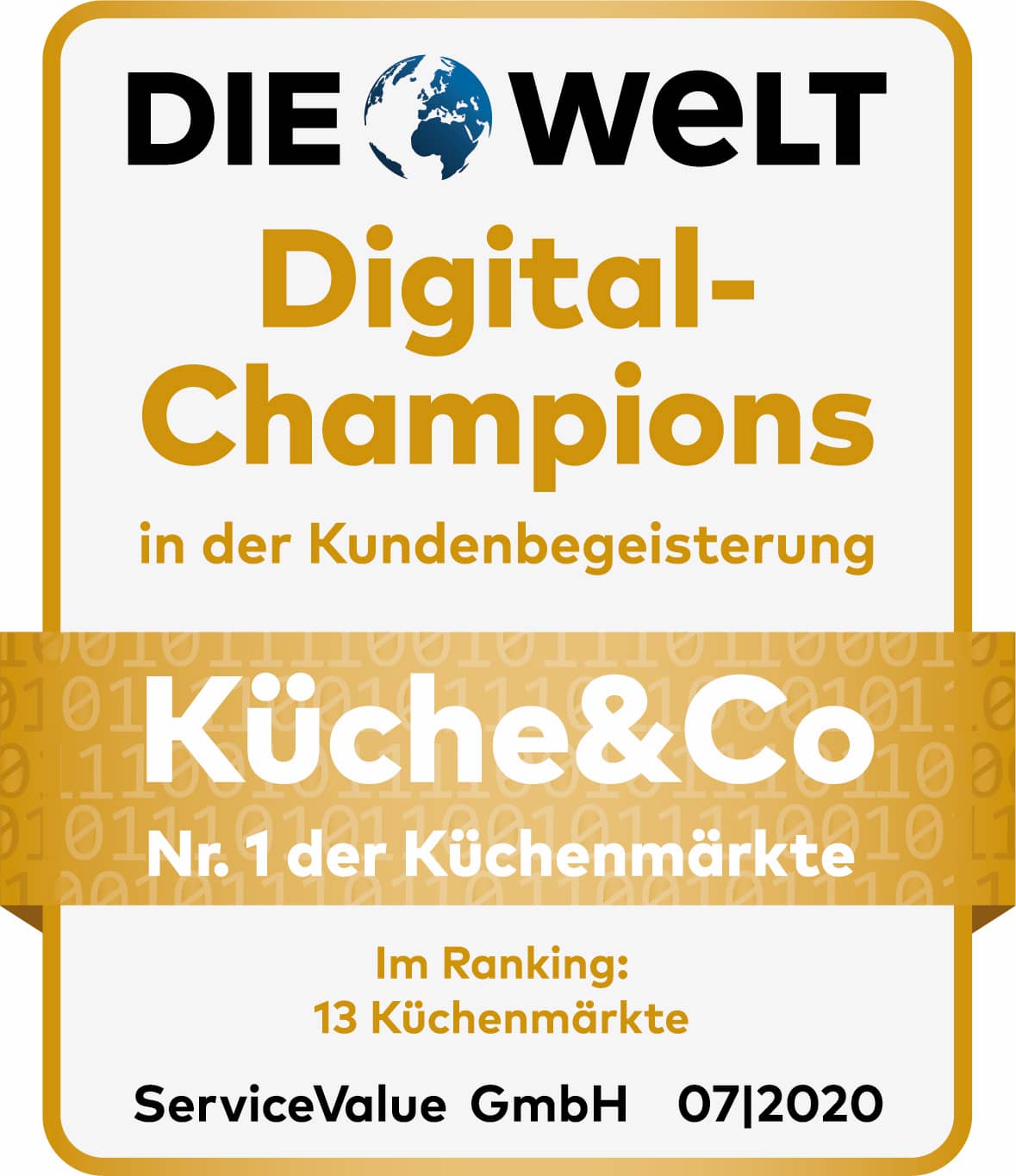 In Kooperation mit der Welt untersuchte die Analyse- und Beratungsgesellschaft ServiceValue 1570 Anbieter aus insgesamt 140 Branchen auf ihre Kompetenz in der digitalen Nähe zum Kunden. In Summe stehen hinter der Befragung 316.000 Kundenurteile. Am Ende findet sich die Auszeichnung des Digital Champion.