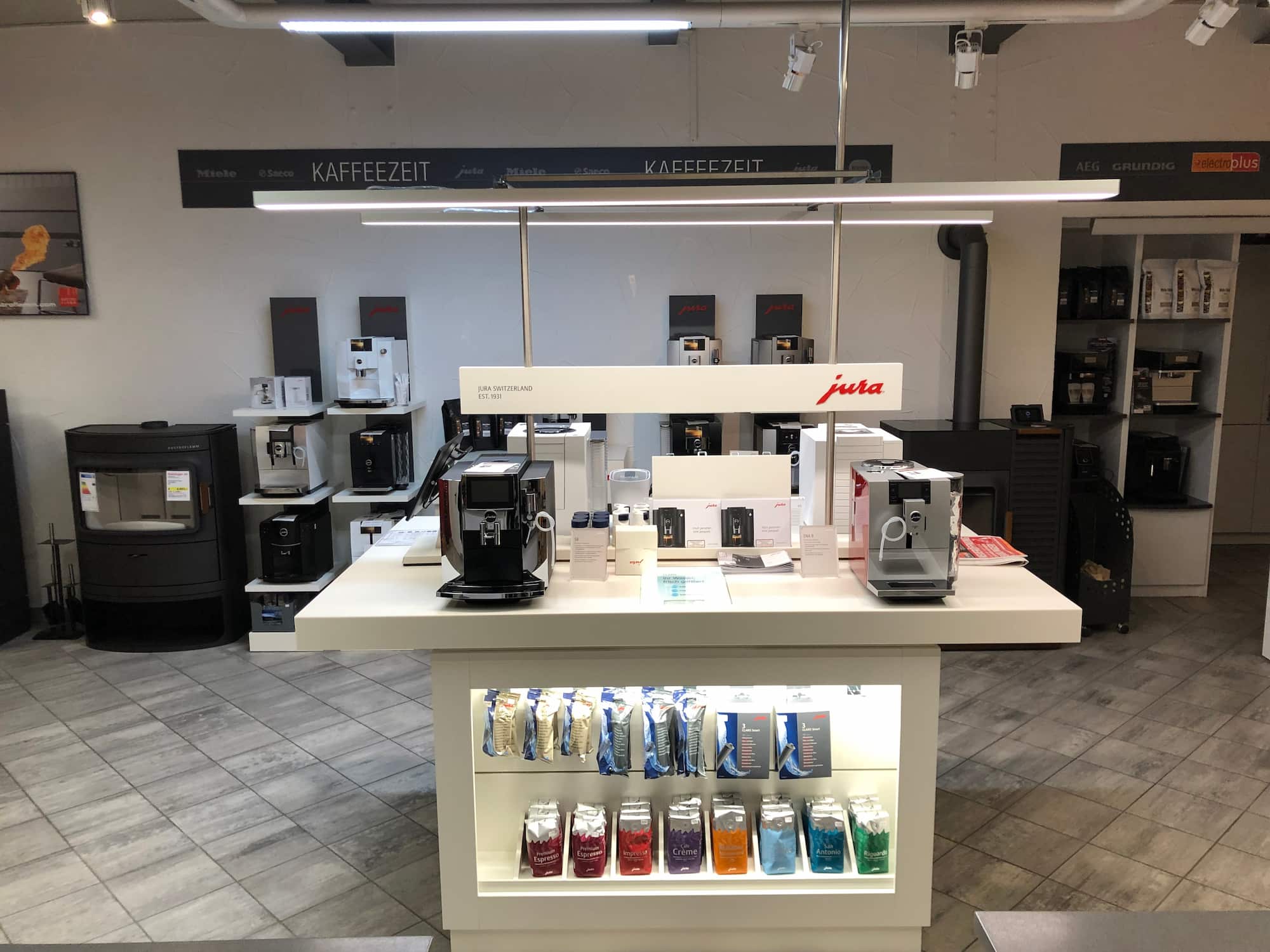 Die Präsentation der Kaffeevollautomaten (u. a. von Jura) macht Lust aufs Ausprobieren (leckeren Kaffee gibt`s natürlich auch!) und im neu gestalteten Küchenbereich warten attraktive Einbauküchen, die am 3 D-Planungs-Tool nach den Wünschen der Kunden entworfen werden. Die gelungene Verschmelzung der Bereiche Küche und Hausgeräte ist für Marc Bahlinger einer der größten neuen Errungenschaften: „Wir waren schon immer in beiden Bereichen gut, aber jetzt bilden sie eine echte Einheit.“