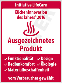 In der Riege der Konsumentenpreise ist die „KüchenInnovation des Jahres“ eine feste Größe. Jedes Jahr zeichnet die Initiative LifeCare mit diesem Preis die innovativsten und verbraucherfreundlichsten Produkte der Branche aus. Im Februar 2016 bereits zum zehnten Mal. Um die objektive und unabhängige Auszeichnung können sich Unternehmen bewerben, die Produkte aus den Bereichen Küchenmöbel und -ausstattung, Elektroklein- und -großgeräte, Koch- und Küchengeräte sowie Küchen-Accesoires herstellen. Erstmalig wird dieses Jahr auch ein Sonderpreis der Jury für den Bereich Gastronomie vergeben.