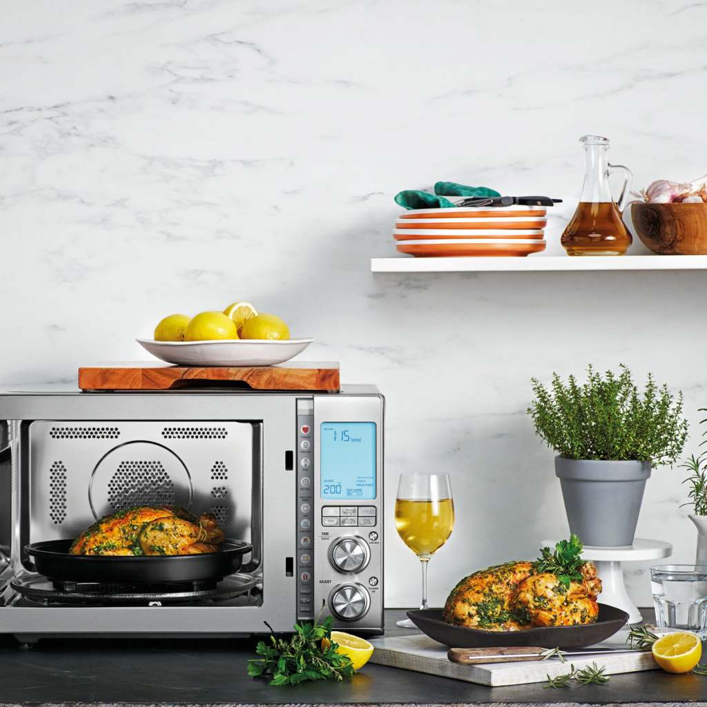 Neben der Kompetenz für Siebträger und das Thema Kaffee, begeistern uns immer wieder die vermeintlich „kleinen“ Geräte von Sage für eine „große“ Küche. Bestes Beispiel ist der Küchen-Allrounder „The Combi Wave 3 in 1“. Das kompakte Gerät verfügt über die Funktionen eines Heißluftfrittierers, eines Umluftofens und einer Mikrowelle, um schmackhaftere, gesündere Gerichte zu zaubern – egal, wie und was wir gerade kochen wollen. Knusprige Pommes Frites bereitet das Gerät ganz ohne Fett mit der „Heißluftfrittierer“-Funktion zu, Brathähnchen oder gar Schokoladen-Brownies gelingen dank einer „Umluftofen“-Funktion. Und die Inverter-Mikrowelle? Die erwärmt im Nu die Lasagne vorm Vortag oder taut die Gemüsesuppe der vergangenen Woche wieder auf.