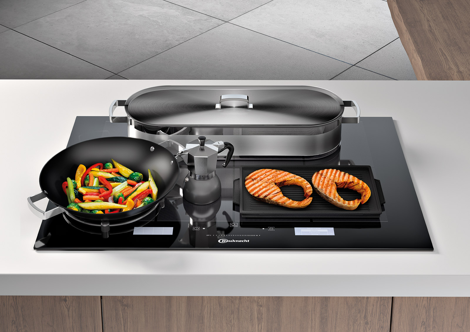Gezeigt wurde auf Gut Böckel auch eine Kombination aus Induktionskochfeld und Dunstabzug. Dieser moderne und platzsparende Dunstabzug ist ebenflächig in das Kochfeld integriert und lässt sich – genau wie das Induktionskochfeld – ganz einfach elektronisch durch vorne angeordnete Bedienelemente steuern. Kochgerüche haben so keine Chance, sich im Raum zu verteilen, da die Gerüche direkt am Entstehungsort beseitigt werden. Die Dunstabzüge fügen sich unauffällig in die Küche ein, nehmen keinen Platz weg und sind zudem leiser als konventionelle Dunstabzugshauben.
