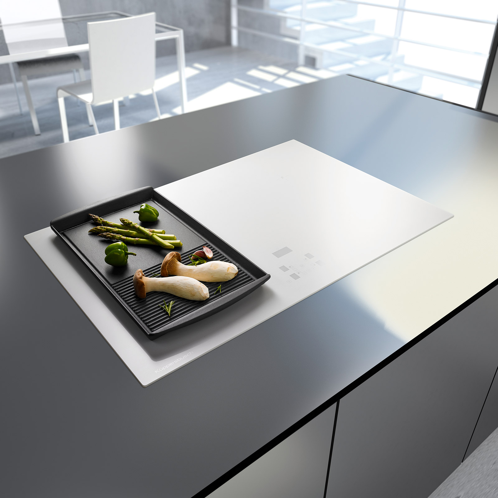Die 80 cm breiten Kochfelder sind zudem mit einer SlimTouch-Steuerung ausgestattet: Die 11-stufige Leistungsregulierung ist leicht und intuitiv zu bedienen und im ausgeschalteten Zustand nicht sichtbar. Erst beim Einschalten des Kochfeldes wird die Steuerung. Durch die Brückenfunktion lassen sich zudem zwei Kochzonen zu einer großen Fläche zusammenschalten.