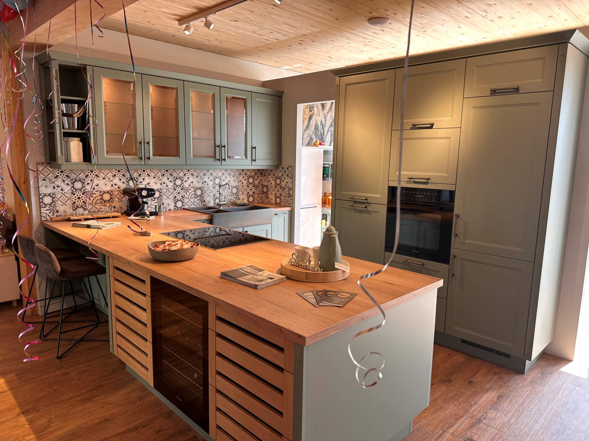 Auch diesmal, genau wie 2021, hat die Zusammenarbeit mit den Küchenprofis von EK Retail richtig gut geklappt. Gemeinsam wurde die Studiokonzeption entwickelt, die Musterküchenausstellung geplant, führende Küchen- und Hausgeräte-Marken