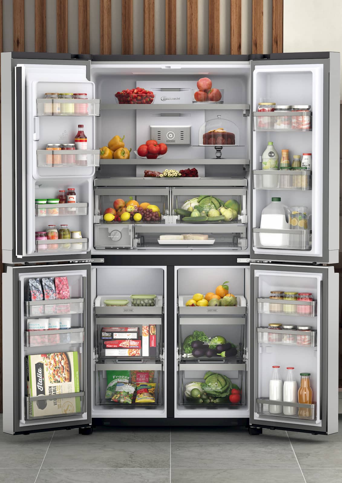 Obst und Gemüse wie frisch vom Markt, perfekt gekühlte Milchprodukte oder cremiges Eis – und dabei stets der perfekte Überblick: Bauknecht präsentiert seine neue Active Quattro Kühl-/Gefrierkombination BQ9I MO1L.