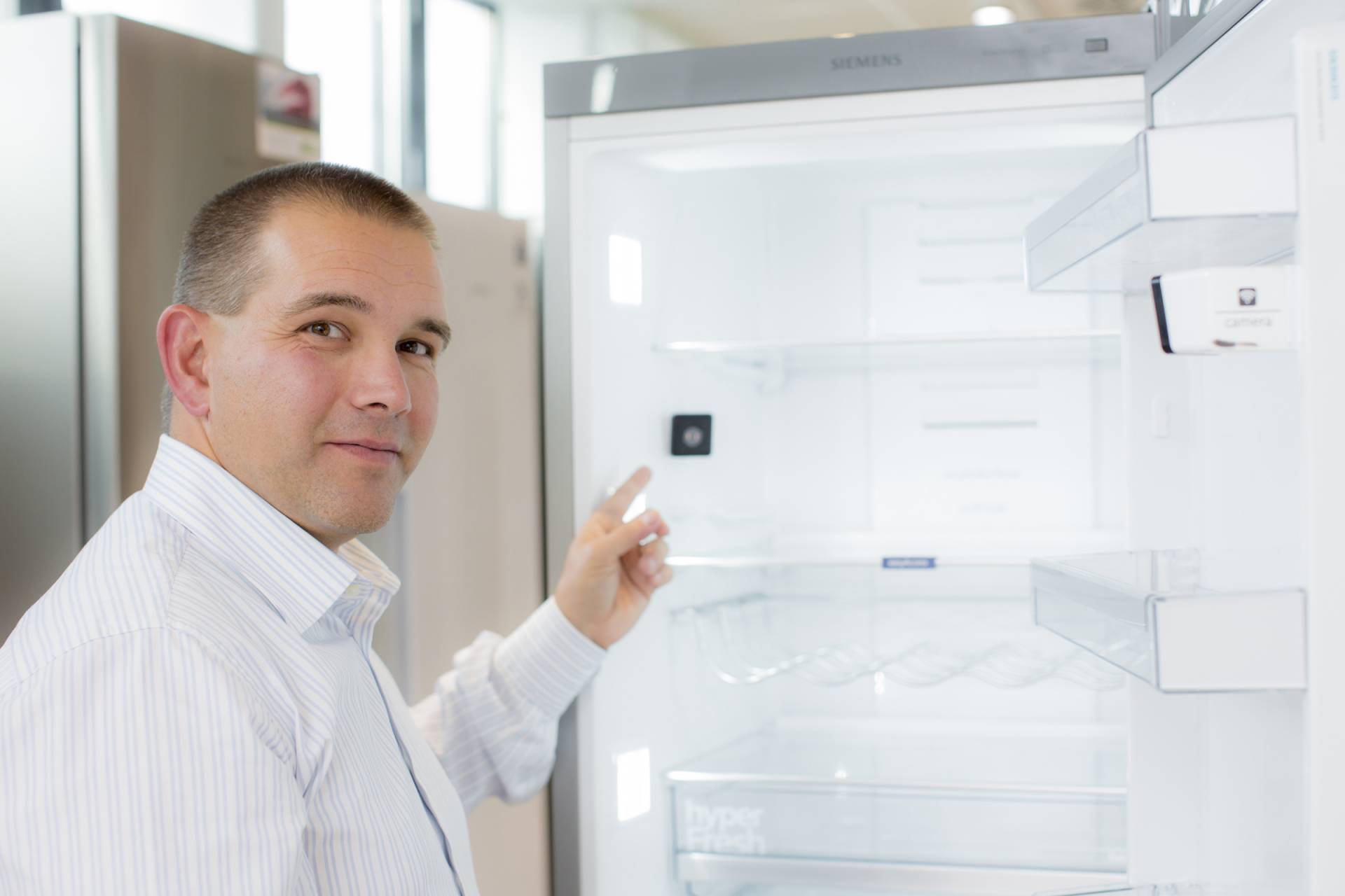 Entwickelt wurde der innovativen Kühlschränk mit eingebauter Kamera im baden-württembergischen Giengen. 330 Entwickler forschen im Giengener Kompetenzzentrum der BSH Hausgeräte GmbH an den Kühl- und Gefriergeräten der Zukunft – darunter auch Jochen Grimminger. Als Leiter für das Projekt „Kamera im Kühlschrank“ war er gemeinsam mit einem sechsköpfigen Team für die Entwicklung verantwortlich. „Unser Ziel war es, die Kamera im Kühlschrank so zu integrieren, dass sie den letzten Blick des Konsumenten nachstellt und dabei qualitativ hochwertige Bilder liefert. Die größte Herausforderung lag in der Konzeption einer Kamera, die säureresistent ist, eine hohe Lichtempfindlichkeit aufweist und kurze Belichtungszeiten hat – ähnlich wie es auch in der Sportfotografie zum Einsatz kommt“, erzählt Grimminger.