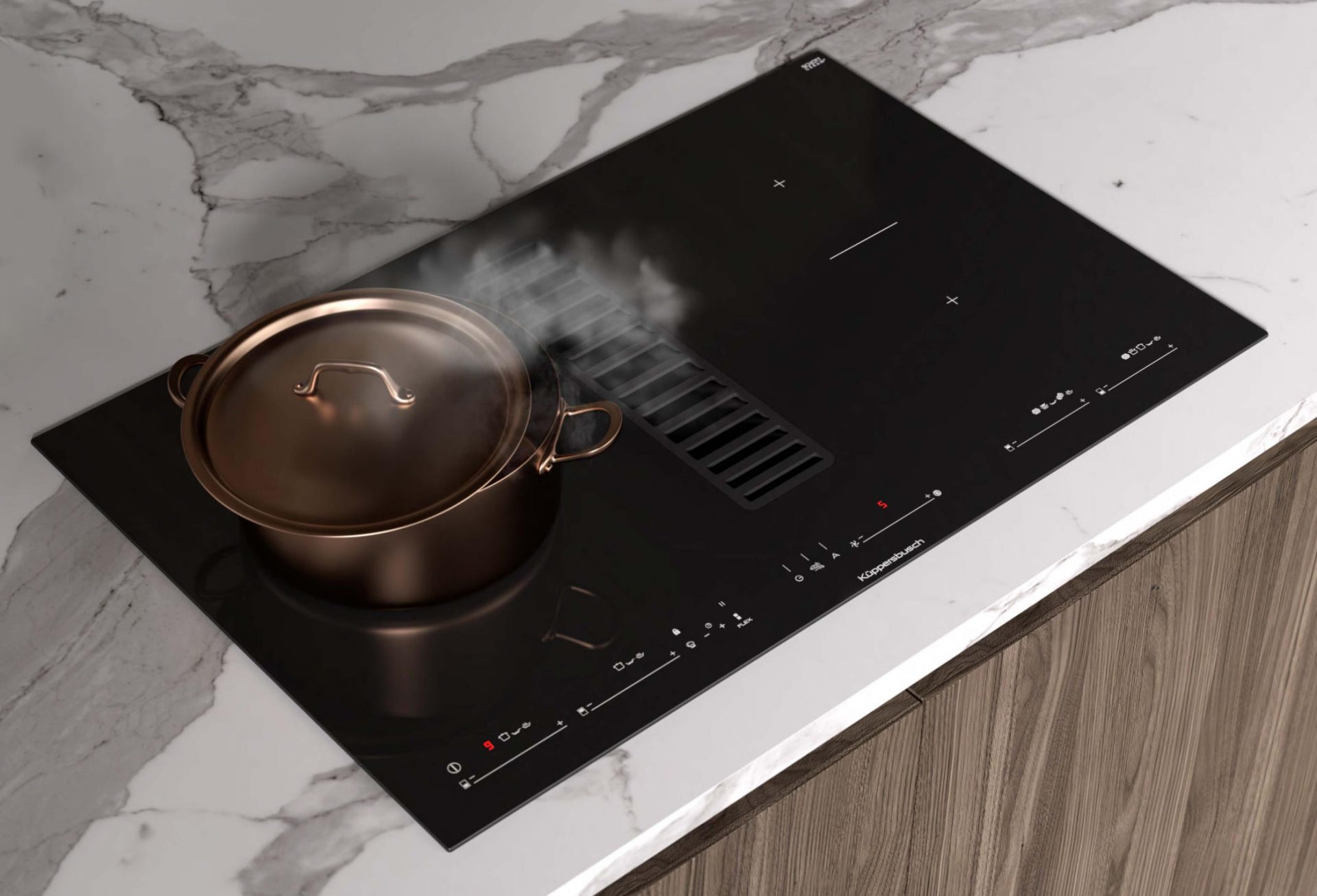 Der Küppersbusch Muldenlüfter KMI 8590.0 ist ein Kochfeld mit integrierter Muldenlüftung, das die Eigenschaften einer Abzugshaube mit einem modernen Induktionskochfeld vereint.