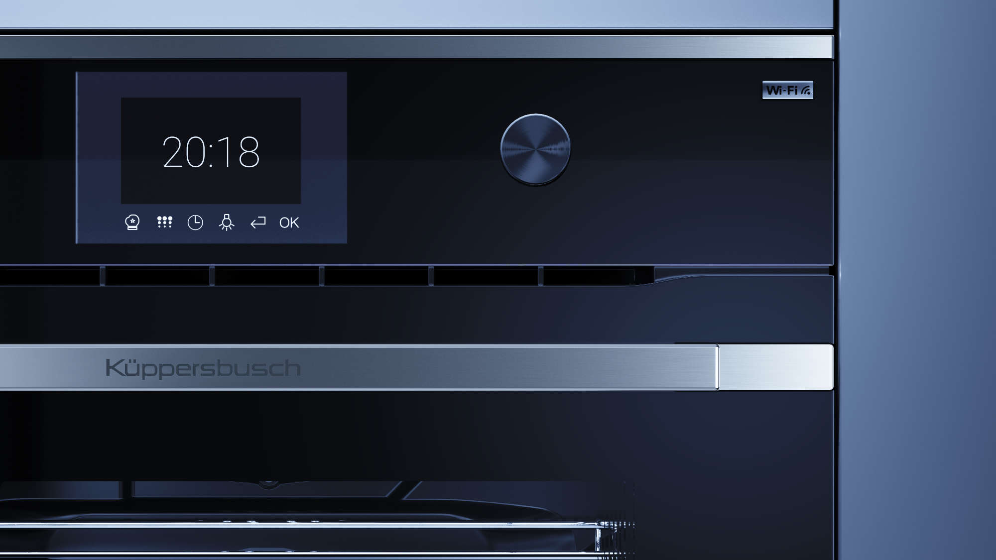 Mit der neuen K-Connect App von Küppersbusch lassen sich beispielsweise fünf WiFi-fähige Geräte per Smartphone bedienen. Dazu zählen ein Pyrolyse-Backofen, der über jeweils zehn Backofenfunktionen und Automatikprogramme verfügt, drei Induktionskochfelder in unterschiedlichen Breiten (60, 78 und 90 cm) und eine Dunstabzugshaube mit vier Leistungsstufen.