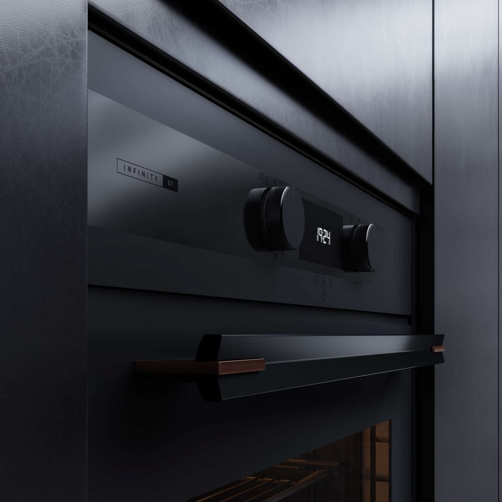 Und bei Teka? Liebe auf den ersten Blick war für uns die Infinity | G1 Sonderedition an Kücheneinbaugeräten. Mattschwarze Oberflächen harmonieren hier mit glänzend schwarzen Details und kupferfarbenen Stilelementen. Alle Einzelgeräte sind in Form und Design perfekt aufeinander abgestimmt und ergeben ein ebenso modernes, wie zeitlos elegantes Gesamtbild mit hohem Wiedererkennungswert.