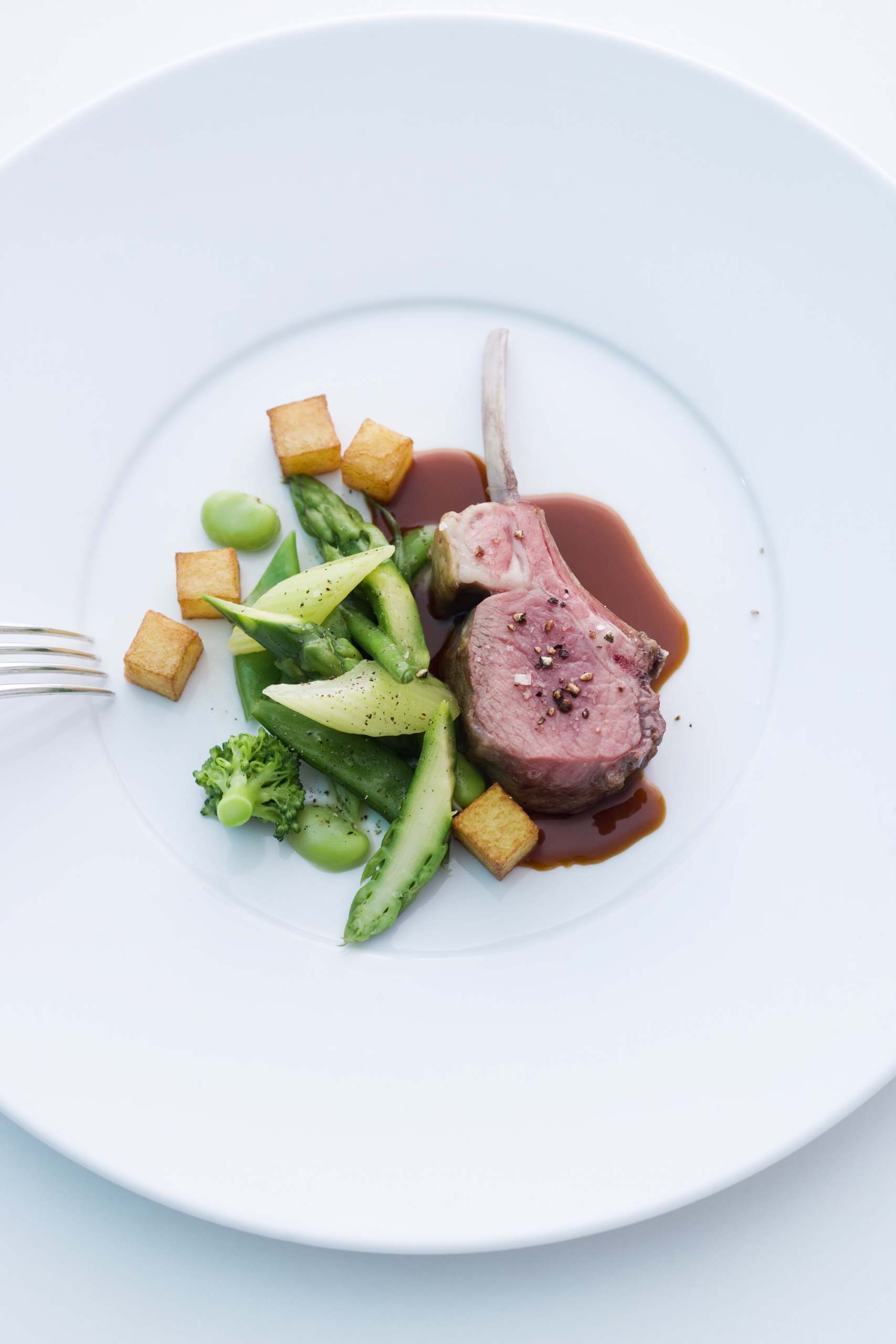 Lammkotelettes mit grünem Frühlings-Gemüse