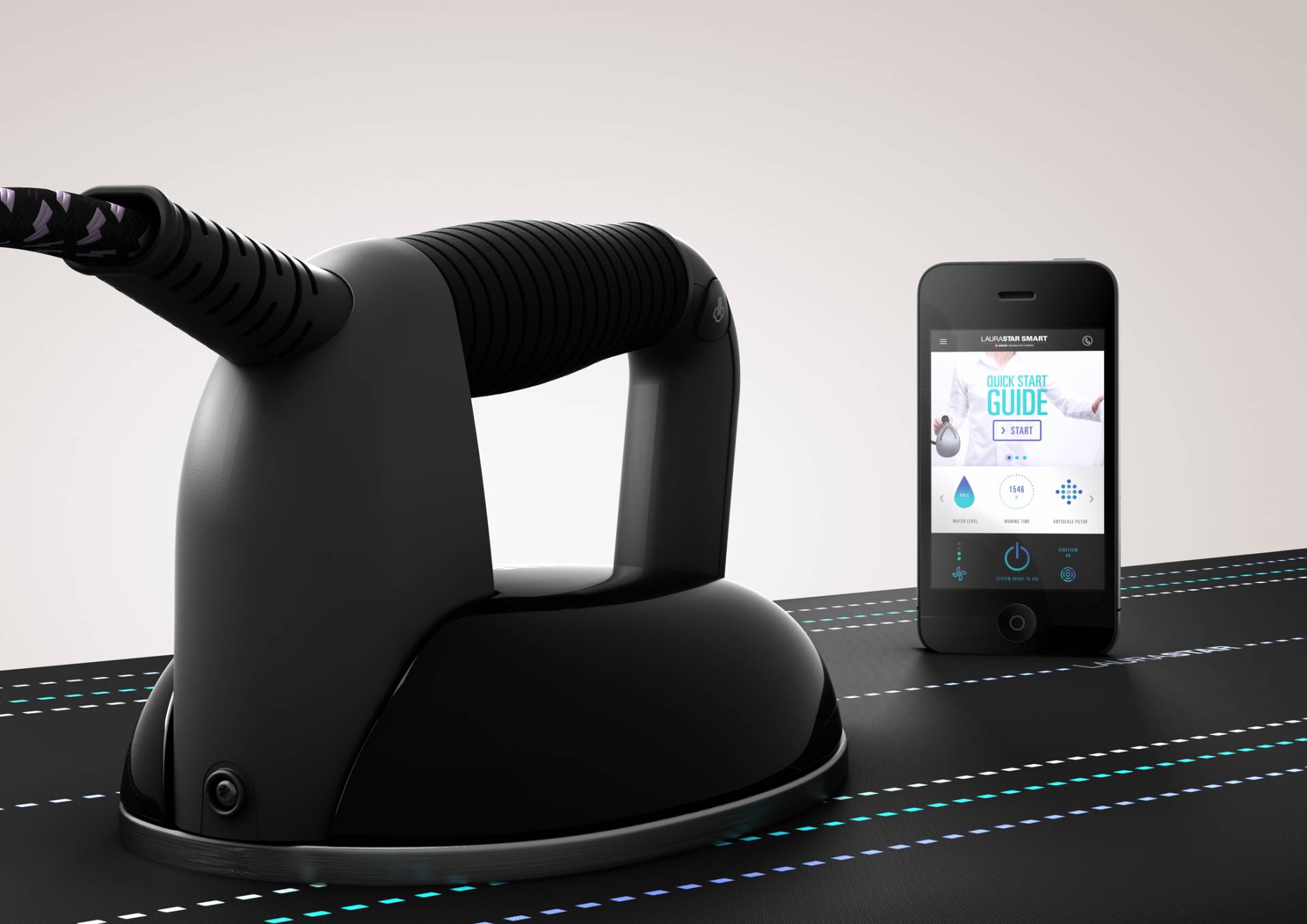 Laurastar führt das erste connected Bügeleisen auf dem Markt mit Bluetooth-Technologie, Bewegungssensoren, automatisierter Dampfausstoß und automatisierte Temperatureinstellung ein. Die neue Premium Serie Laurastar Smart folgt dem Trend des Internets der Dinge und soll Leistungsstärke mit Anwendererfahrung verbunden.
