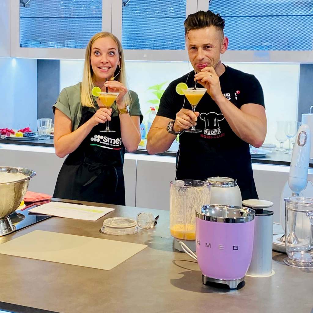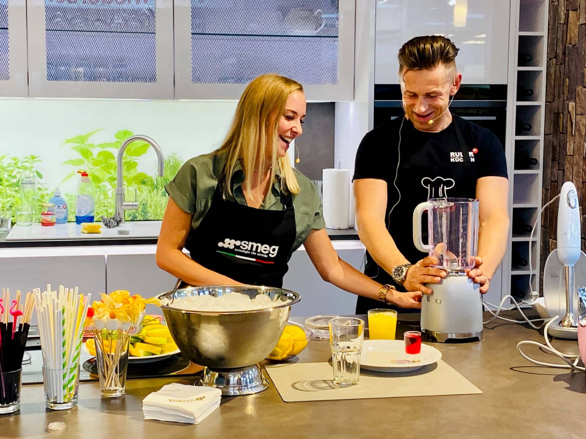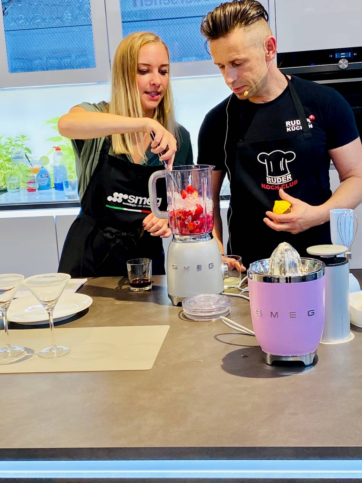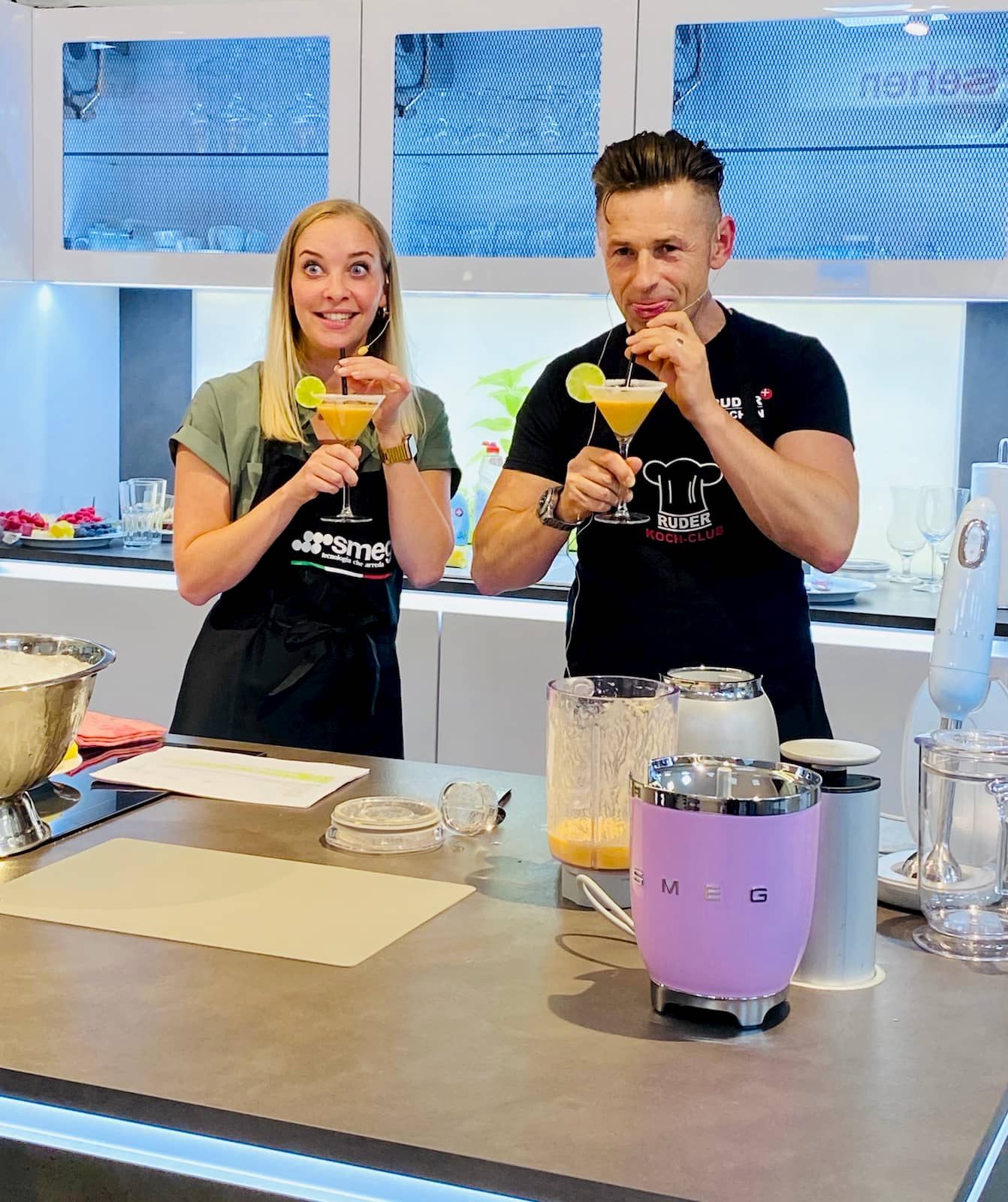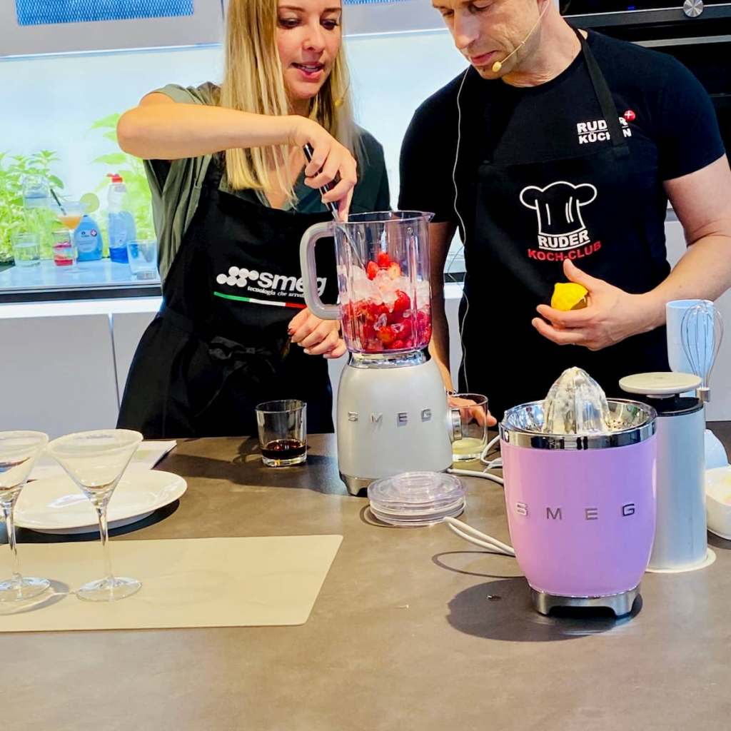 Aufgrund des großen Erfolgs hatten sich die beiden kreativen Unternehmer für den Hochsommer etwas Besonderes einfallen lassen: Am 13. August feierte der erste „electroplus küchenplus Ruder Cocktail-Workshop“ Premiere. In Zusammenarbeit mit Smeg und Produkttrainerin Lisa Maehl wurden Schritt für Schritt leckere Cocktails zubereitet – in einer der Showküchen von electroplus küchenplus Ruder und mit den Hausgeräten von Smeg.