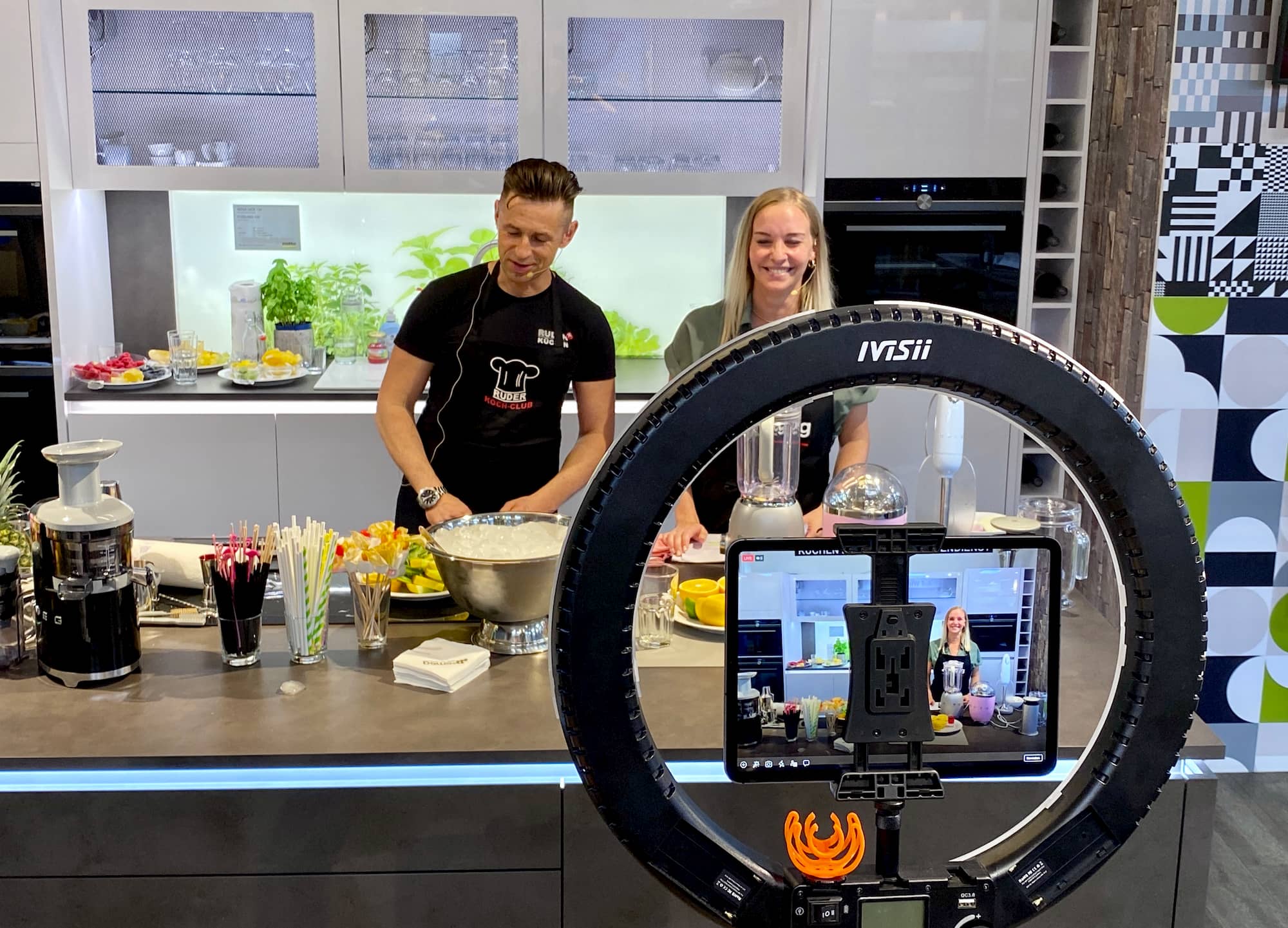 Eine gute wie nachahmenswerte Idee nicht nur für die Händler der EK/servicegroup: electroplus küchenplus Ruder aus Berlin veranstaltet seit Jahren Kochevents für seine Kunden. Als diese während der Lockdown-Phase nicht mehr in die Geschäfte kommen konnten, hatten sich die beiden Unternehmer Mario Ruder und Claudia Theißen entschieden, ihre Kochevents ins Netz, frei nach dem Motto „Wenn Sie nicht zu uns kommen können, dann kommen wir zu Ihnen“, zu verlegen. Per Livestream via Facebook und Instagram werden die Koch-Events seitdem ausgestrahlt.