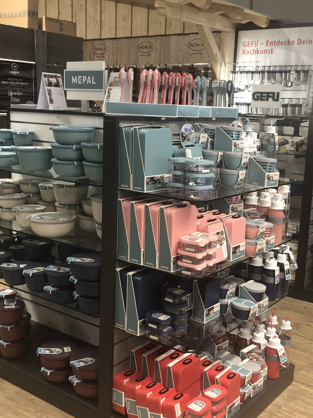 Siemandel bezeichnet sein Grilldorado gerne als Paradies für Grillfans. Ganz unrecht hat er damit nicht. Allein die Optik macht einiges her: Die Grillgeräte der elf Markenhersteller sind auf Holzboden locker und großzügig angeordnet, mit genügend Platz, das jeweilige Gerät von allen Seiten zu begutachten. Die Laufwege zwischen den Marken sind breiträumig und heben sich durch den Bodenbelag ab. Statt auf die von den Herstellern vorgegebenen Shop-Systeme setzt man bei Hartmann auf einen rustikalen Look, sozusagen die Klammer, die alles verbindet. Vorbild dafür ist das Blockhaus-Ambiente von Rösle, mit dem sich das Marktoberdorfer Unternehmen auf den Messen zeigt. Siemandel hat kurzerhand den Rösle-Messebauer verpflichtet, der halbhohe Zwischenwände und Regale mit unbehandelten Balken baute. Ein stimmiger Look, der zum Thema Grillen passt.