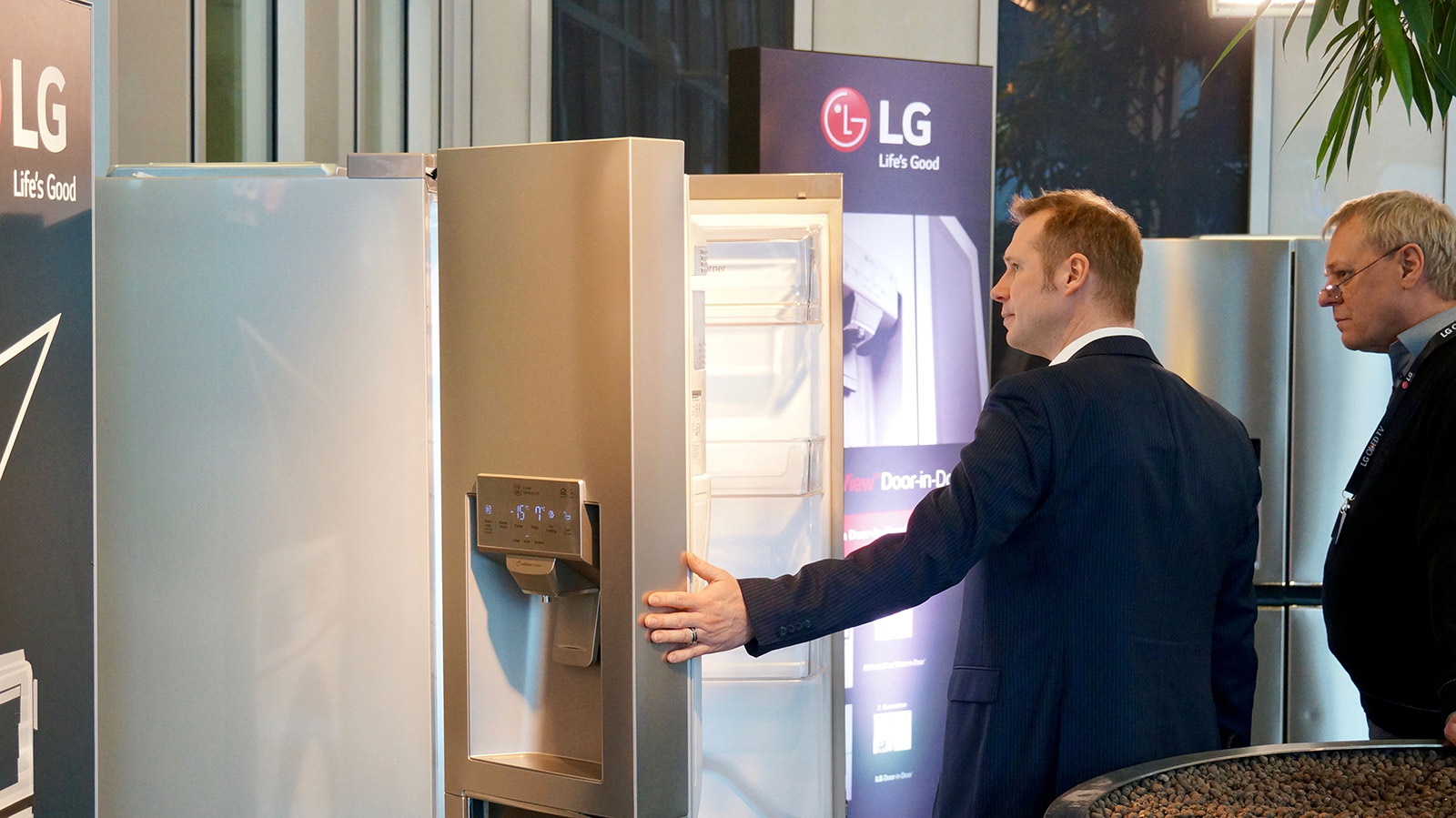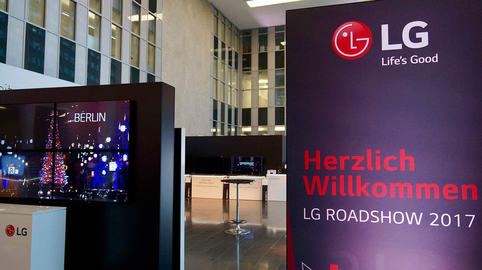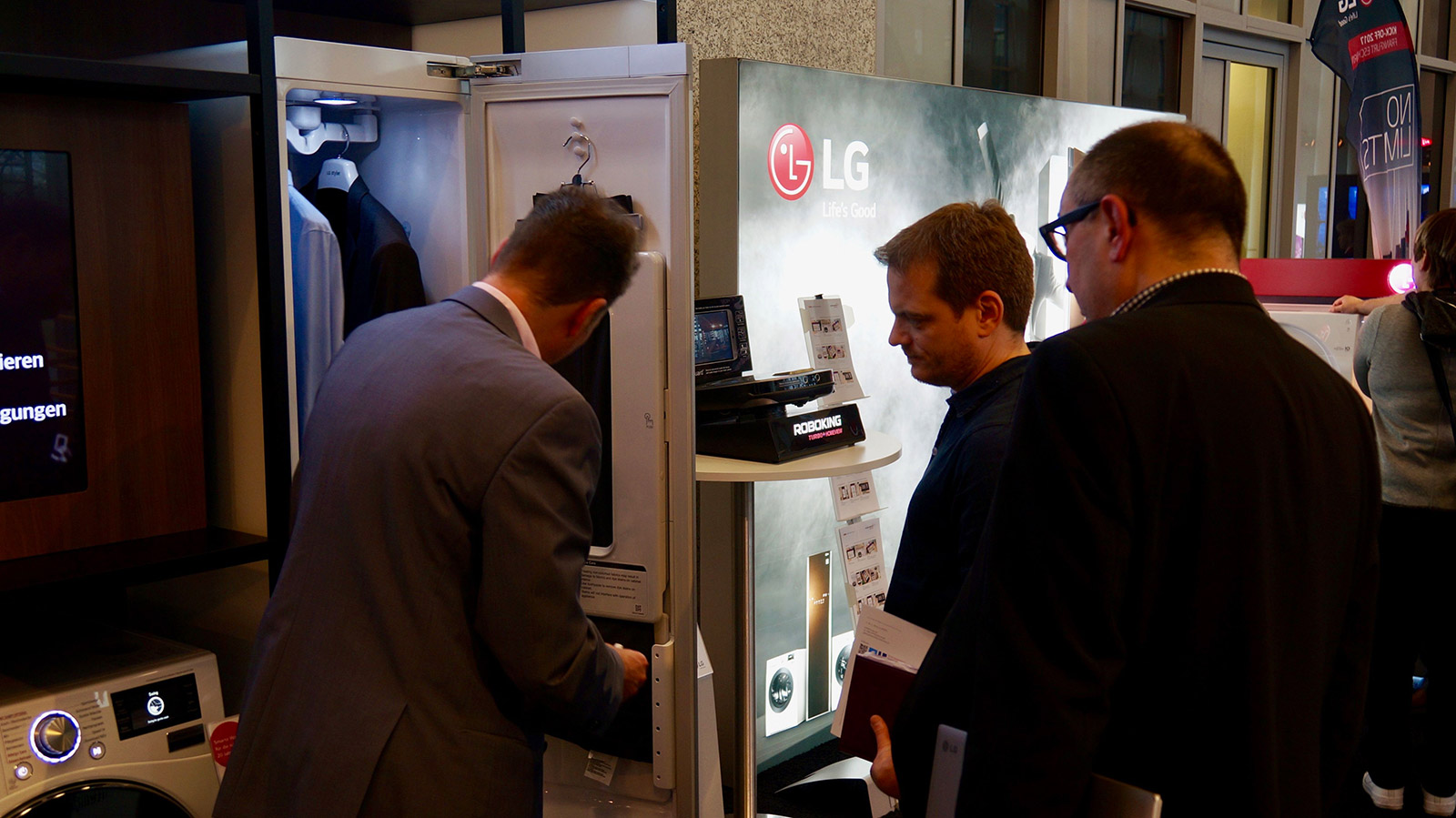 Aber auch im Home Appliance-Bereich gibt es im Jahr 2017 spannende Neuheiten für den deutschen Markt, die LG auf der Roadshow präsentiert – und in Szene setzt: In einem Boxring treten LGs HomBots gegen die Staubsaugerroboter der Konkurrenz an, ein Koch führt den Gästen die Vorteile der neuen NeoChef-Mikrowelle vor Augen und der InstaView Door-in-Door-Kühlschrank zieht mit seiner transparenten Tür die neugierigen Blicke der geladenen Händler und Journalisten auf sich.