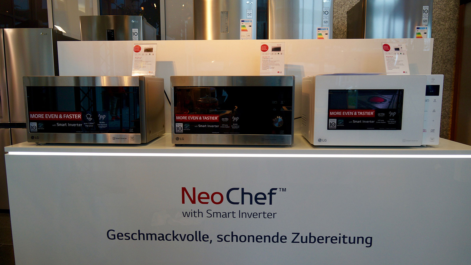 Abgerundet werden die Hausgeräte-Highlights auf der diesjährigen LG-Roadshow durch den NeoChef-Mikrowellenofen. Die optimierte Smart-Inverter-Technologie ermöglicht beim NeoChef vielfältige Gar- und Zubereitungsoptionen durch eine präzise Steuerung der Mikrowellen-Leistung. Dadurch lässt sich beispielsweise Fleisch gleichmäßig auftauen. Zudem verfügen die neuen Geräte über eine antibakterielle EasyClean-Beschichtung, mit der sich die Mikrowellenöfen ohne großen Zeit- und Kraftaufwand sauber halten lassen.