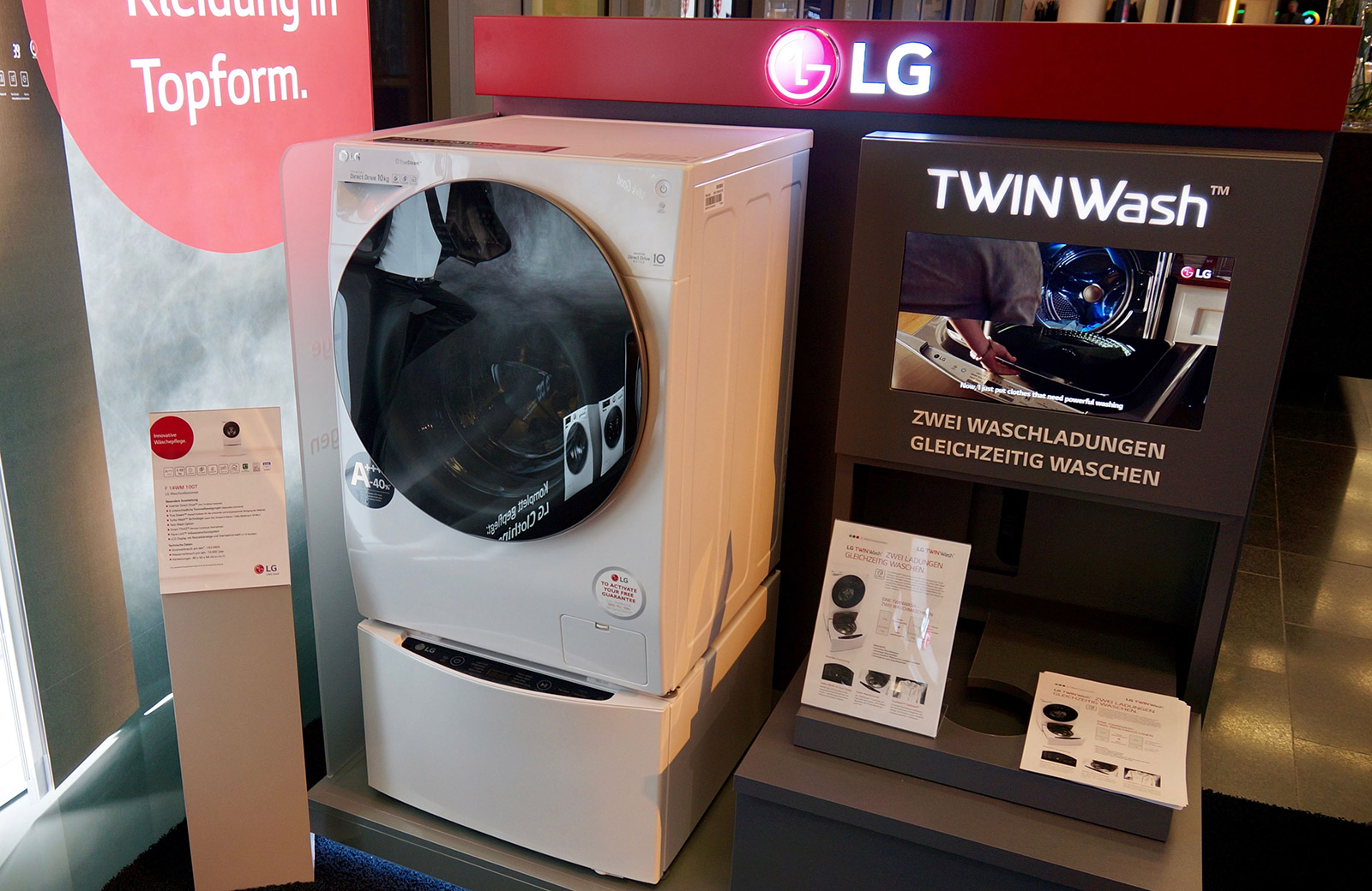 Ersparnisse in Form von Zeit und Geld verspricht auch die neue LG TWINWash-Waschmaschine. Dabei wird die herkömmliche Waschmaschine durch eine separate Miniwaschmaschine für Feinwäsche bis zu zwei Kilogramm ergänzt. Somit können zwei Wäscheladungen parallel gewaschen oder kleine Wäschemengen gepflegt werden. Das TWINWash-Modell kommt in zwei Geräteklassen auf den deutschen Markt: die F 14WM 10GT hat eine Kapazität bis zu zehn Kilogramm Wäsche, die F 14WM 9GS bewältigt Wäscheladungen bis neun Kilogramm.