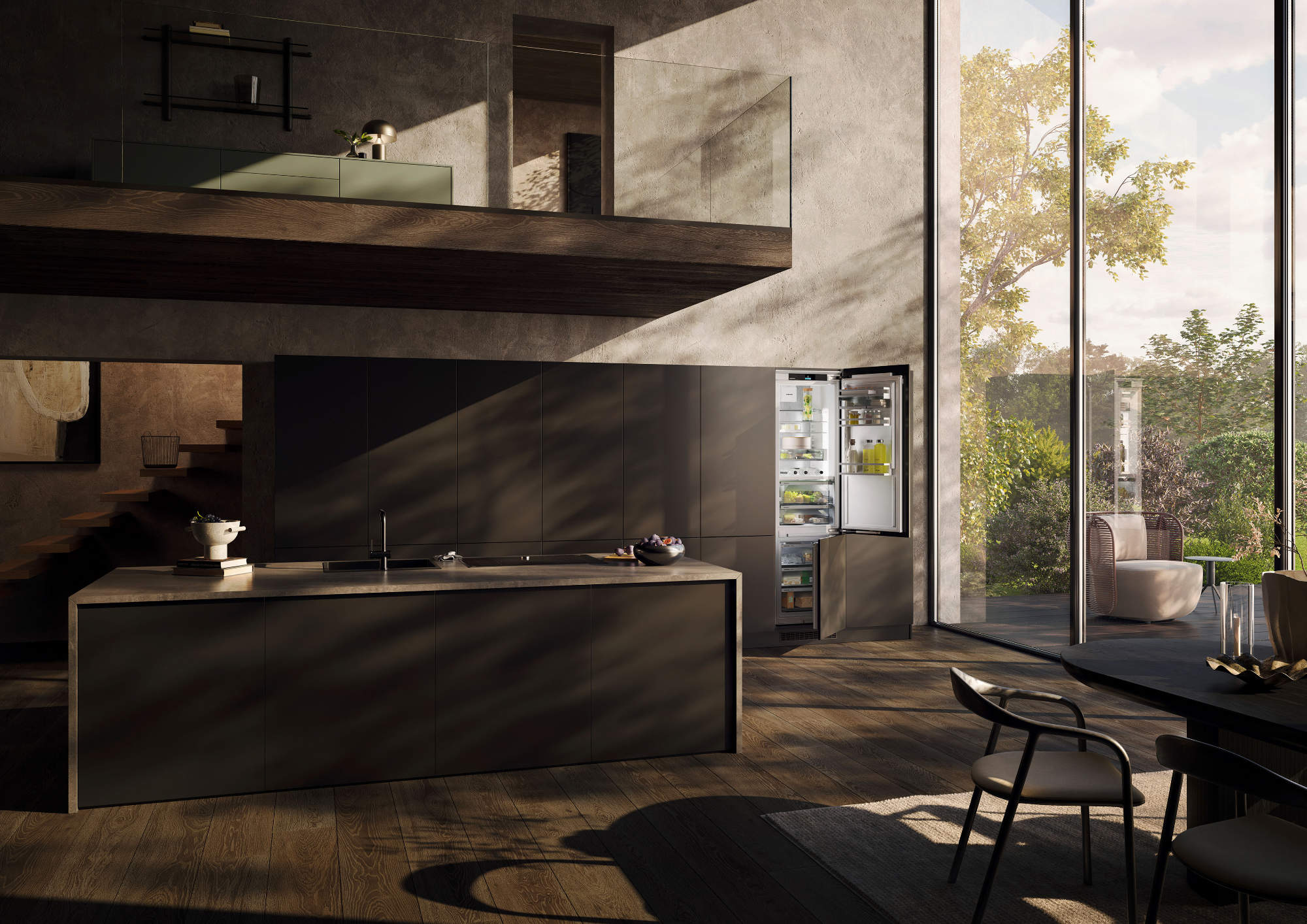 Dank InteriorFit ragt lediglich die Tür definiert heraus. Selbstredend verfügt auch diese Kombination über die gewohnt hochwertigen Features wie beispielsweise BioFresh Professional mit HydroBreeze für langanhaltende Frische, den IceMaker für bis zu 130 Eiswürfel pro Tag oder InfinitySpring als Quelle für kristallklares, kaltes Wasser direkt im Gerät.