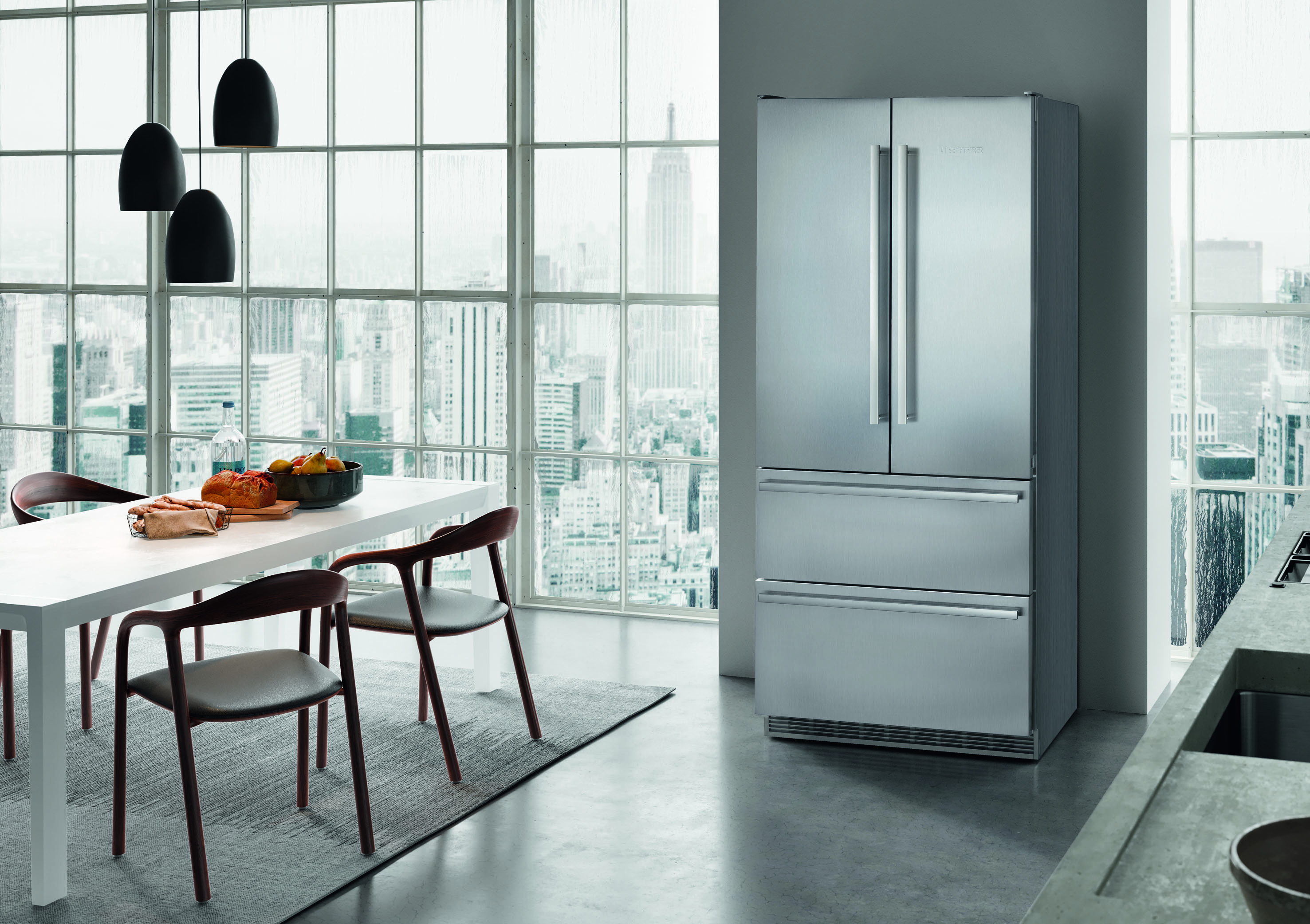 Die Kühl-Gefrierkombination CBNes 6256 ist besonders energieeffizient und verfügt über die BioFresh-Technologie für lange Frische. Der Einbau Weinschrank zur Weintemperierung EWTdf 3552 aus der Vinidor-Reihe besitzt zwei Weinsafes zur unabhängigen und gradgenauen Temperierung von +5 °C bis +20 °C, damit Rot-, Weißweine sowie Champagner immer in der optimalen Genusstemperatur aufbewahrt werden können.