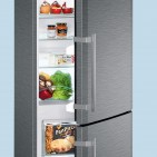 Die Liebherr Kühl-/Gefrierkombination CBNPbs3756 mit dem Ausstattungsdetail Black Steel ist eine Kühl-Gefrier-Kombinationen in hochattraktivem und außergewöhnlich ansprechendem schwarzen Edelstahl. Gepaart mit der hochwertigen Smart Steel-Veredlung verleiht das Material dieser neuen Liebherr Kühlgefrierkombination ein Hightech-Design und eine zeitlose Eleganz. Durch seinen Querschliff erzeugt Black Steel eine ganz eigene, exclusive und ansprechende Optik und macht diesen Kühler zum echten Highlight in der Küche. Die Smart Steel-Veredlung reduziert dabei Fingerabdrücke erheblich, ist besonders leicht zu reinigen und wesentlich unempfindlicher gegen Kratzer. Der elegante Aluminumgriff mit integrierter Öffnungsmechanik ermöglich leichtes Öffnen und rundet das Design perfekt ab.