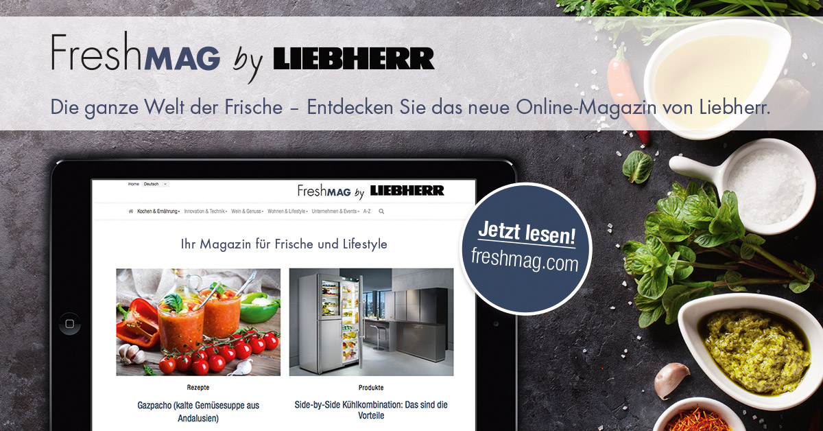 Liebherr hat ein neues Online-Angebot unter dem Namen „FreshMAG“ initiiert. Neben Rezepten, Service- und Design-Themen unterstreicht der Spezialist für Kühlen und Gefrieren mit vielen Hinweisen zur perfekten Lebensmittellagerung seine Kernkompetenz und offeriert dem User ein zentrales Magazin rund um das Thema Lebensmittel, Frische und Lifestyle.