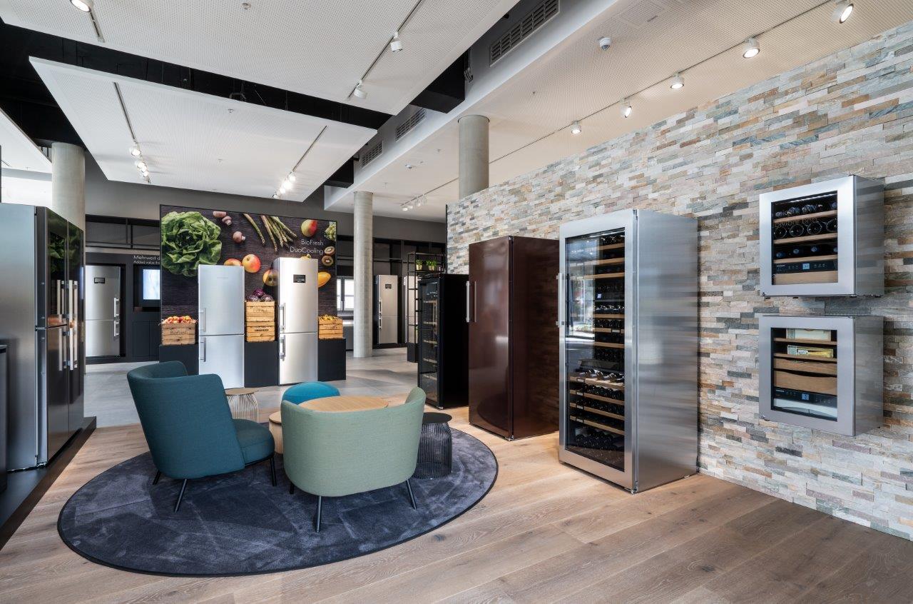 Auf über 322 der insgesamt 3.530 Quadratmeter können die Besucher ab sofort das aktuelle Sortiment der Kühl- und Gefriergeräte hautnah und live erleben. Über 15 Millionen Euro wurden in den Neubau investiert. Auf fünf Stockwerken sind neben dem großen Showroom neue Büroflächen für 130 Arbeitsplätze sowie Konferenz-, Schulungs- und Veranstaltungsräume entstanden. Gleichzeitig bieten die neuen Räumlichkeiten ein modernes und zeitgemäßes Arbeitsumfeld für die Mitarbeiterinnen und Mitarbeiter des Unternehmens. So ermöglicht modernste Kommunikationstechnik ein vernetztes Arbeiten, die Integration einer umweltfreundlichen Pflanzenwand im Empfangsbereich sorgt für ein optimales Raumklima.