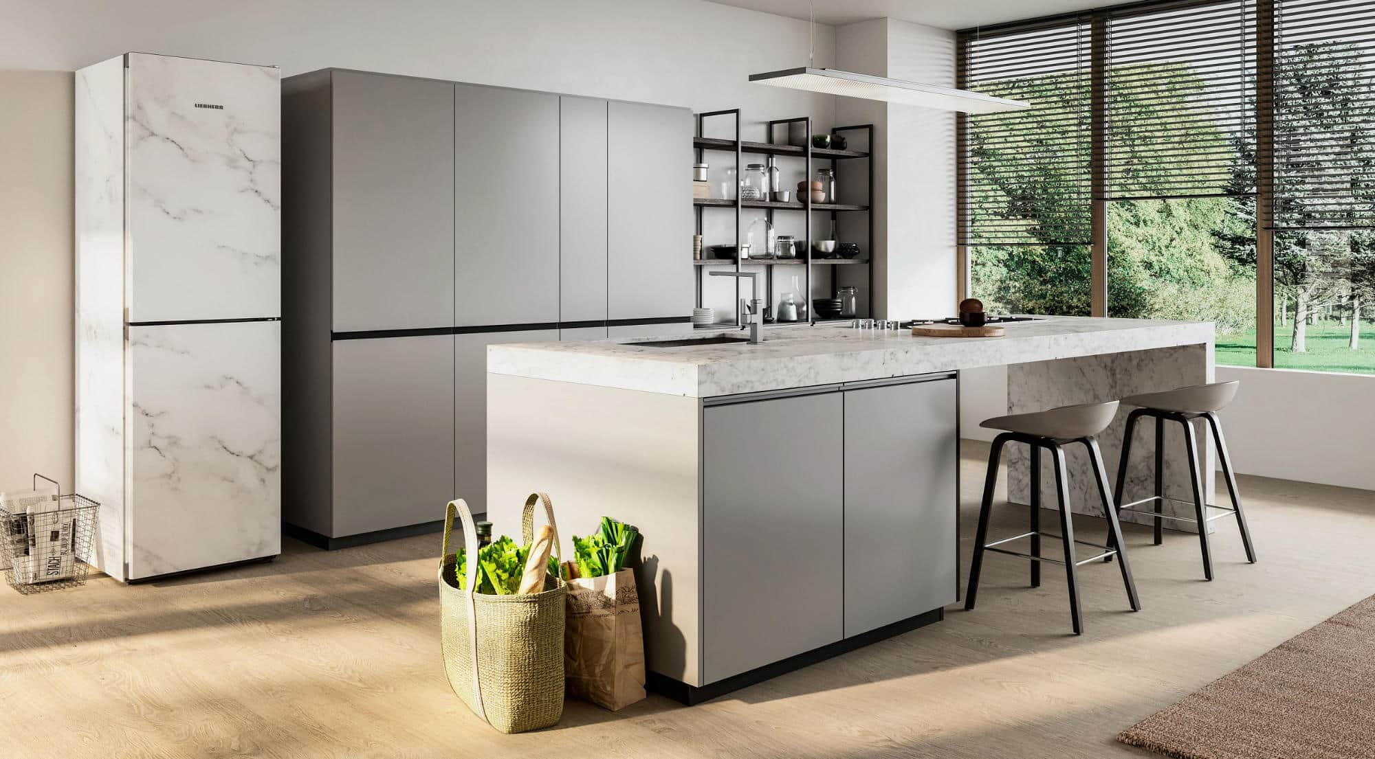 Liebherr stellt drei neue Designs für seinen Kühlschrank-Konfigurator MyStyle vor: Die Mason-Serie in Marmor- und Beton-Optik lässt freistehende Kühl-Gefrierkombinationen und Kühlschränke wie einen eleganten Felsen in der Brandung wirken.