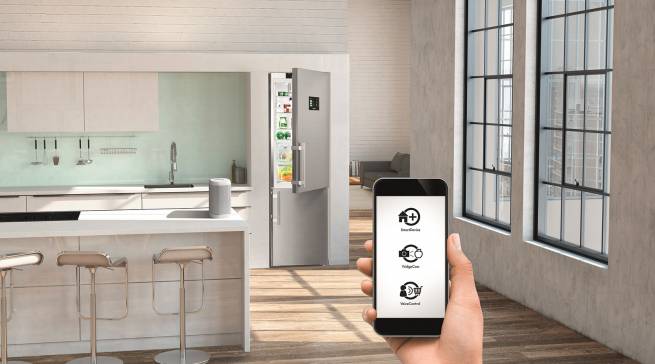 So geht SmartShopping heute: Kombiniert mit der SmartDevice-App lassen sich die Kühlgeräte übers Tablet oder das Smartphone jederzeit mobil steuern. Neben den relevanten Statusinformationen liefert die modular integrierbare Liebherr FridgeCam, powered by Smarter, Bilder der eingelagerten Lebensmittel. Wie Liebherr zur Beginn der IFA mitteilte, ist der deutsche Kühlgerätespezialist mit dem britischen Start-up Smarter eine Kooperation eingegangen.