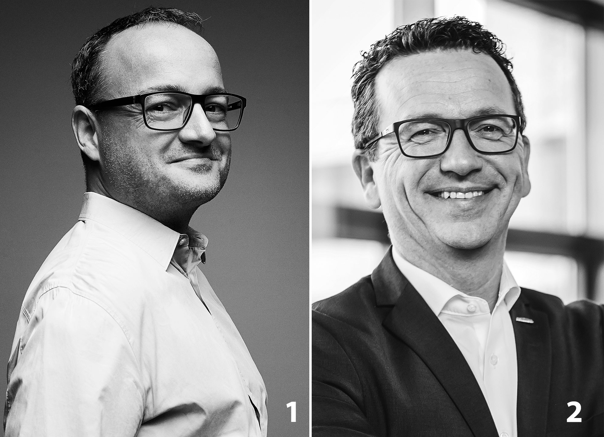 1 | Die Fragen, mit der sich Harry Gatterer (li.), Geschäftsführer des Zukunftsinstituts, täglich auseinandersetzt: Welche Veränderungen, welche Trends und Megatrends prägen die Gegenwart und welche Rückschlüsse lassen sich daraus für die Zukunft schließen? 2 | Küchenpionier aus Leidenschaft: Markus Schüller, Geschäftsführer Schüller Möbelwerk.