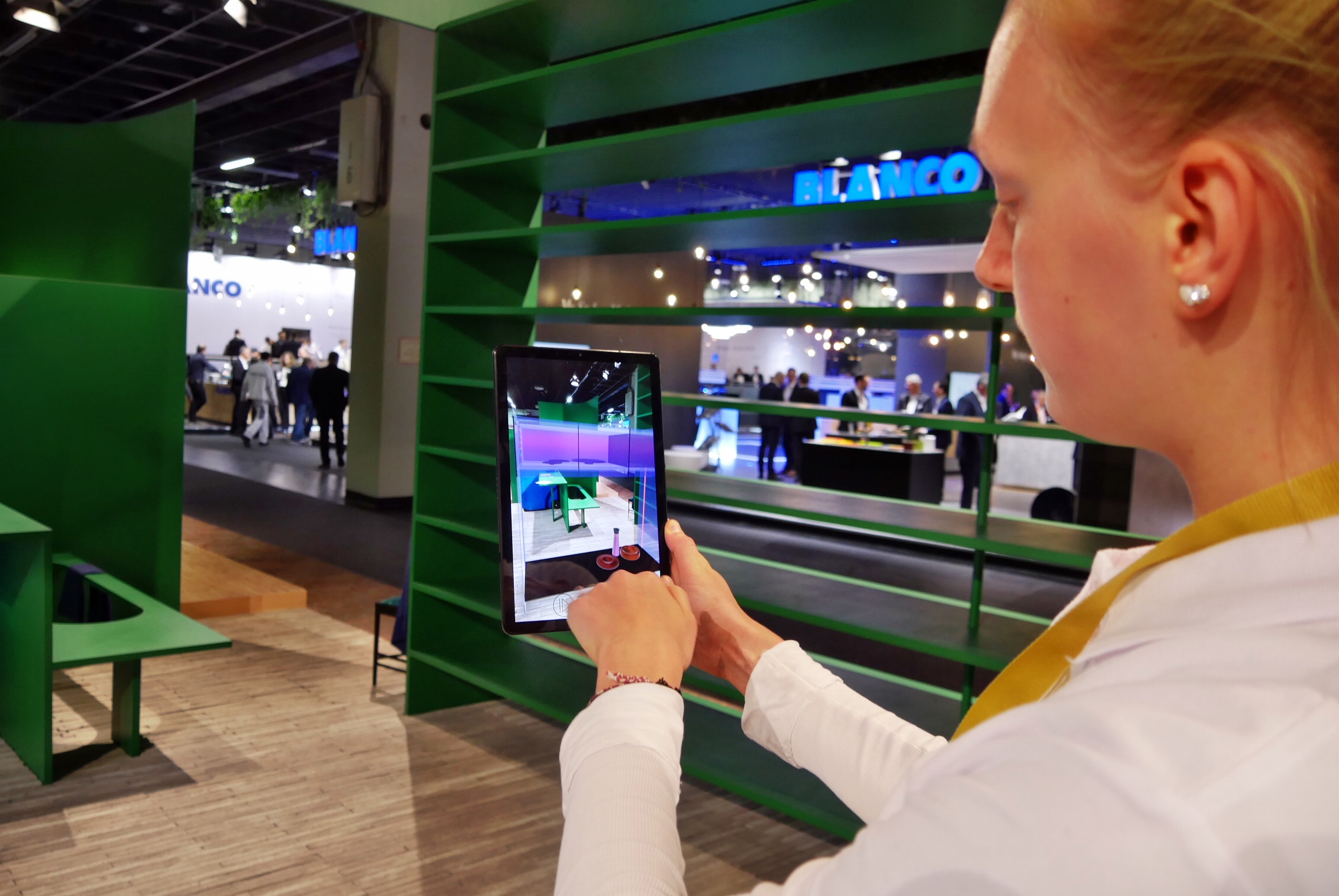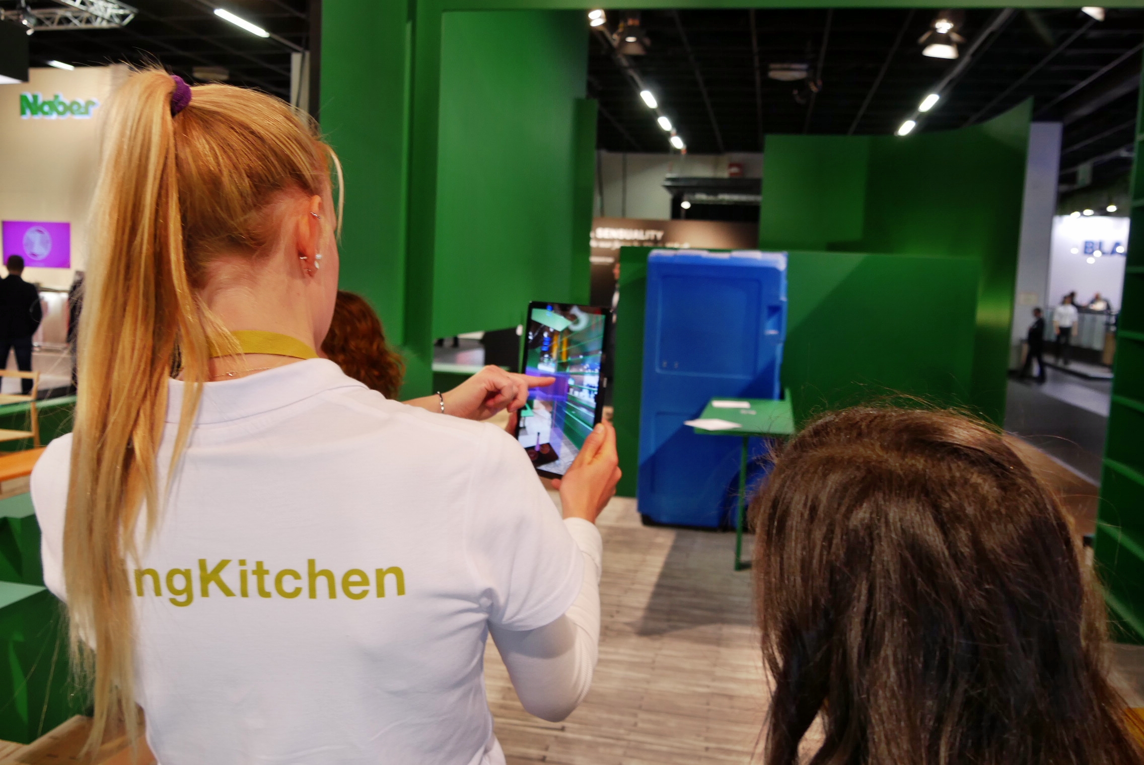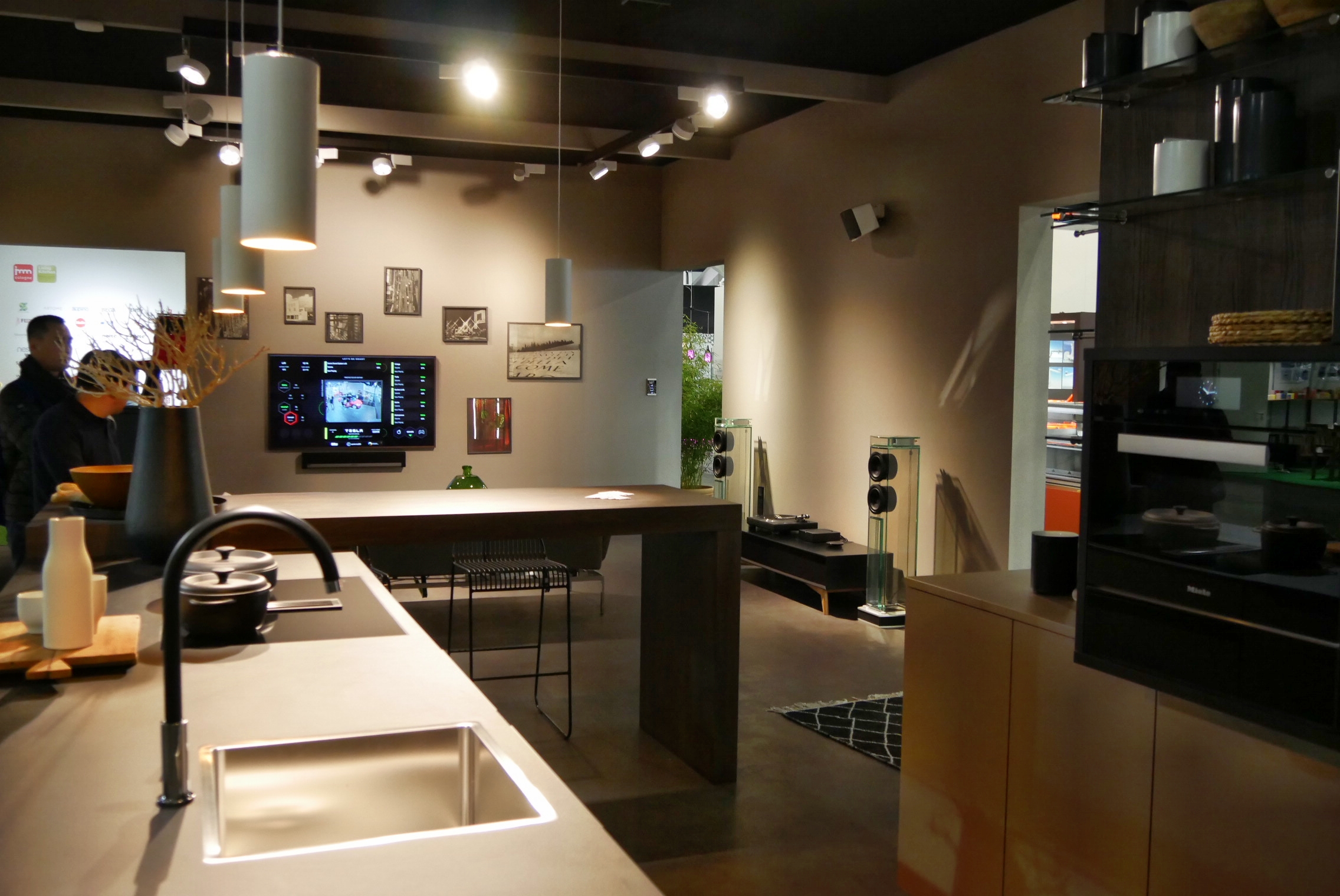 Beispiel: „Future Design“ in Halle 4.2 war als experimenteller Raum für die unterschiedlichsten Ideen künftiger Küchengestaltung gedacht. Die vom Schweizer Designer Alfredo Häberli entworfene (und von Samsung unterstützte) Küchenvision stellte auf 160 Quadratmetern ein ganzheitliches Konzept vor, das einen Ausblick auf die Entwicklungen im Küchendesign geben sollte. Besucher erlebten die begehbare Installation mit einer Augmented Reality-App. Ohne Smartphone oder Tablet indes sah man als Messebesucher nichts – außer einigen wenigen „Was auch immer“-Objekten, die den Charme einer Autobahn-Schilderbrücke vermittelten.