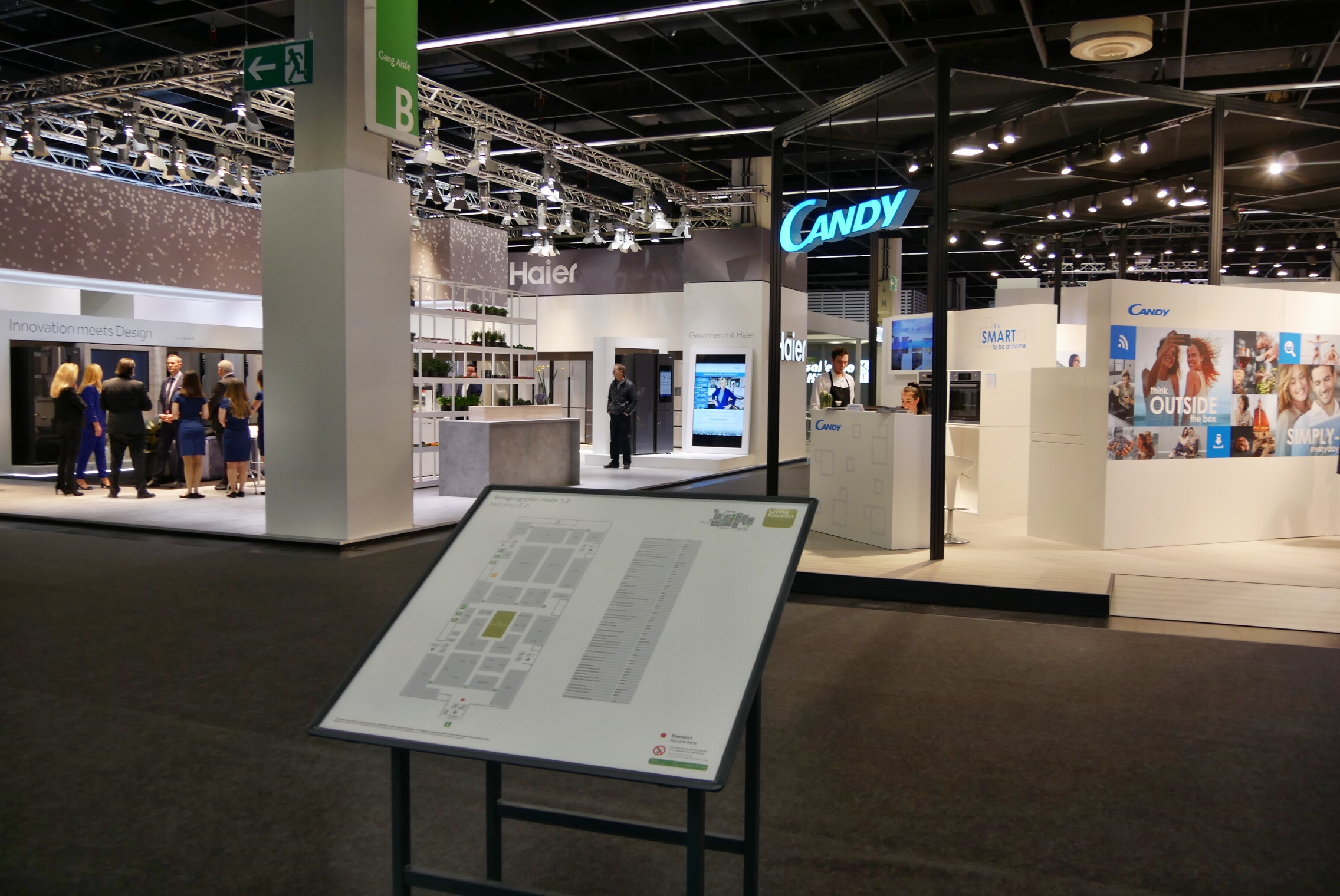 Wer aber über den Nord-Eingang der Messe zur Living-Kitchen gelangte, kam an Haier und Candy Hoover am Entree zur Halle 5 nicht vorbei. Doch wo einst Bauknecht für Besuchertrauben sorgte, herrschte am Messemontag beinahe gähnende Leere. Kein guter Eindruck für den ersten Eindruck. Wunderbar offen und innovativ gestaltet der Haier-Stand (der an diesem Montag mehr Besucher verdient gehabt hätte), durch optische Barrieren eher abweisend die Messe-Präsenz von Candy Hoover direkt gegenüber.
