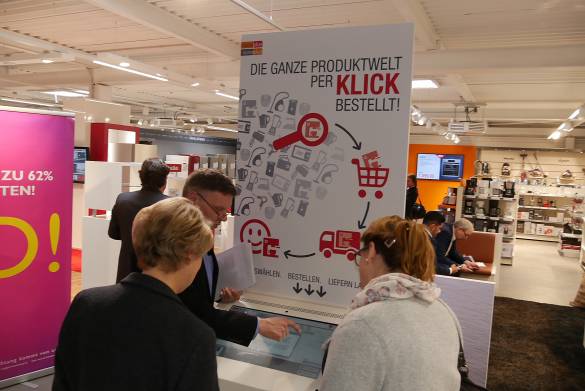 Vom Unternehmertag ging es nahtlos in die Frühjahresmesse EK LIVE. Naturgemäß stand diese auch im Zeichen der Digitalisierung, der Bereich Omnichannel und PoS-Service war nicht zu übersehen. Die digitale Regalverlängerung per Kiosksystem mit bereits erfassten 1.600 Produkten aus dem Kleingerätesortiment wurde live in der Musterausstellung des Moduls electroplus präsentiert.