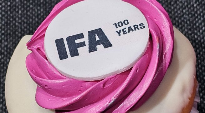Der erste Eindruck am Mittwochvormittag im hochsommerlichen Berlin bei 35 Grad C: Die IFA ist in der Tat bunter geworden (und das neue „Kleid“ steht ihr prima), auch die Akkreditierung am Messe-Südeingang erfolgt zügiger und professioneller denn je. Und sie zeigt sich (wieder) mit aufmerksamkeitsstarken Bannern – wie etwa an der Gedächtniskirche – im Herzen der Stadt.