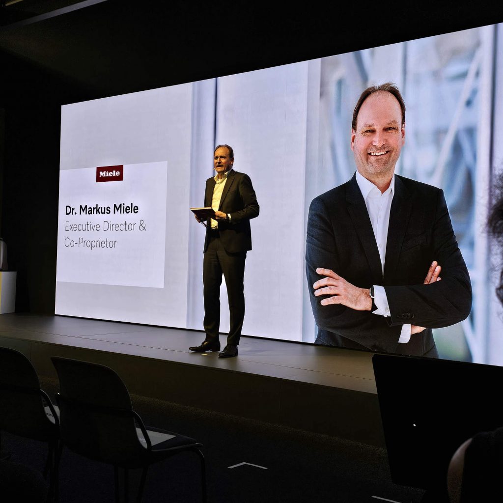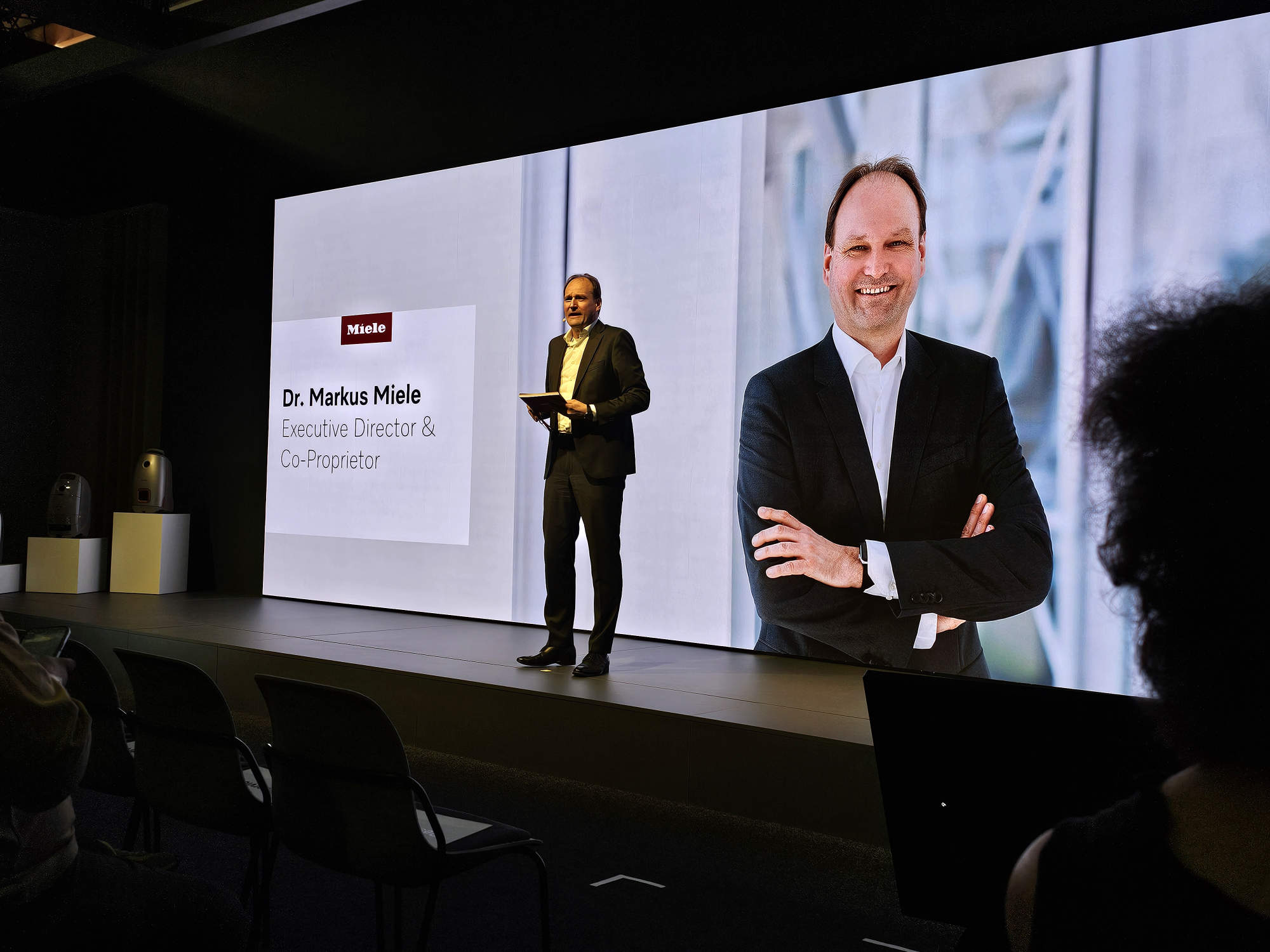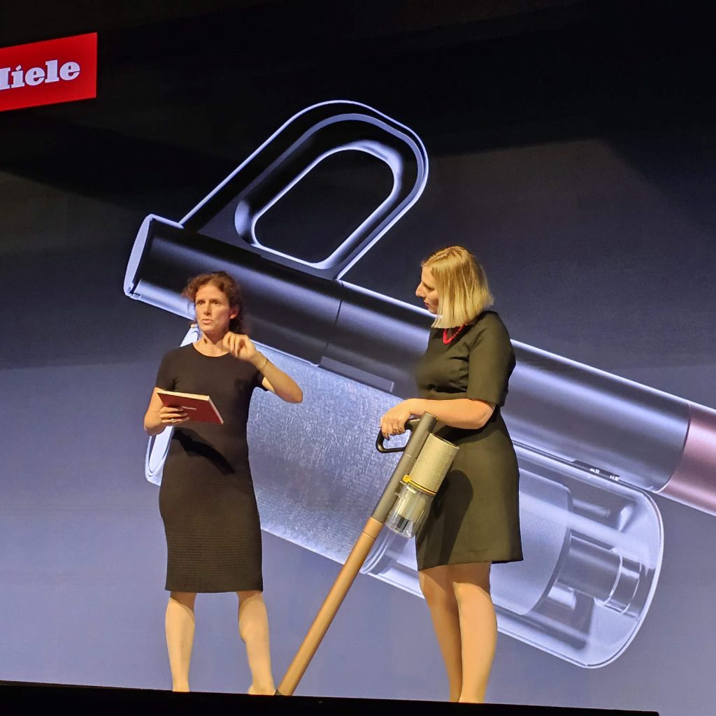 Geblieben indes ist der Ablauf der Pressekonferenzen: Erst kommt Siemens, dann folgt Miele und schließlich Bosch. Und während bei den beiden BSH-Marken die Genuss-Themen im Lebensraum Küche im Vordergrund standen, lag der Miele-Schwerpunkt im Jubiläums-IFA-Jahrgang auf den „Muss“-Themen, konkret Wäsche- und Bodenpflege.