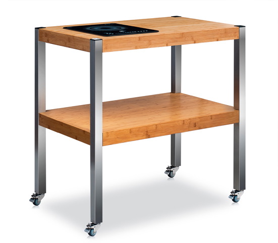 Besonders für die Outdoor-Küche eignet sich der kompakte Küchenwagen Star3 Twist II. Mit einer massiven, geräumigen Bambus-Arbeitsplatte und einem Ablageboden ist er ideal für den Balkon oder als Ergänzung zum Gartengrill. Herzstück ist auch hier ein Zweikreis-Induktionszone mit Original Schott Ceran-Oberfläche, automatischer Topferkennung und einer maximalen Leistungsaufnahme von 2300 Watt.