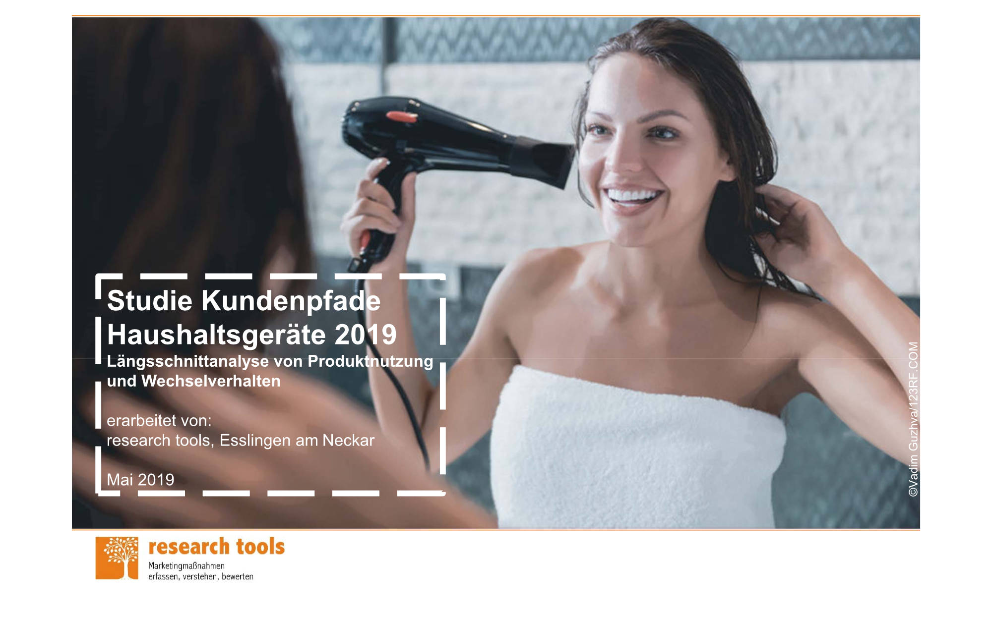 Die „Studie Kundenpfade Haushaltsgeräte 2019“ von Research Tools gibt auf 171 Seiten Einblick in die Produktnutzung und das Wechselverhalten von 1.780 Haushaltsgerätekunden auf Basis von 2.000 online-repräsentativen Interviews. Grundlage der Längsschnittanalyse entlang des Kundenpfads sind 5.798 analysierte Haushaltsgerätekäufe. Weitere Informationen zur Studie finden Sie unter https://research-tools.net/studie-kundenpfade-haushaltsgeraete-2019.